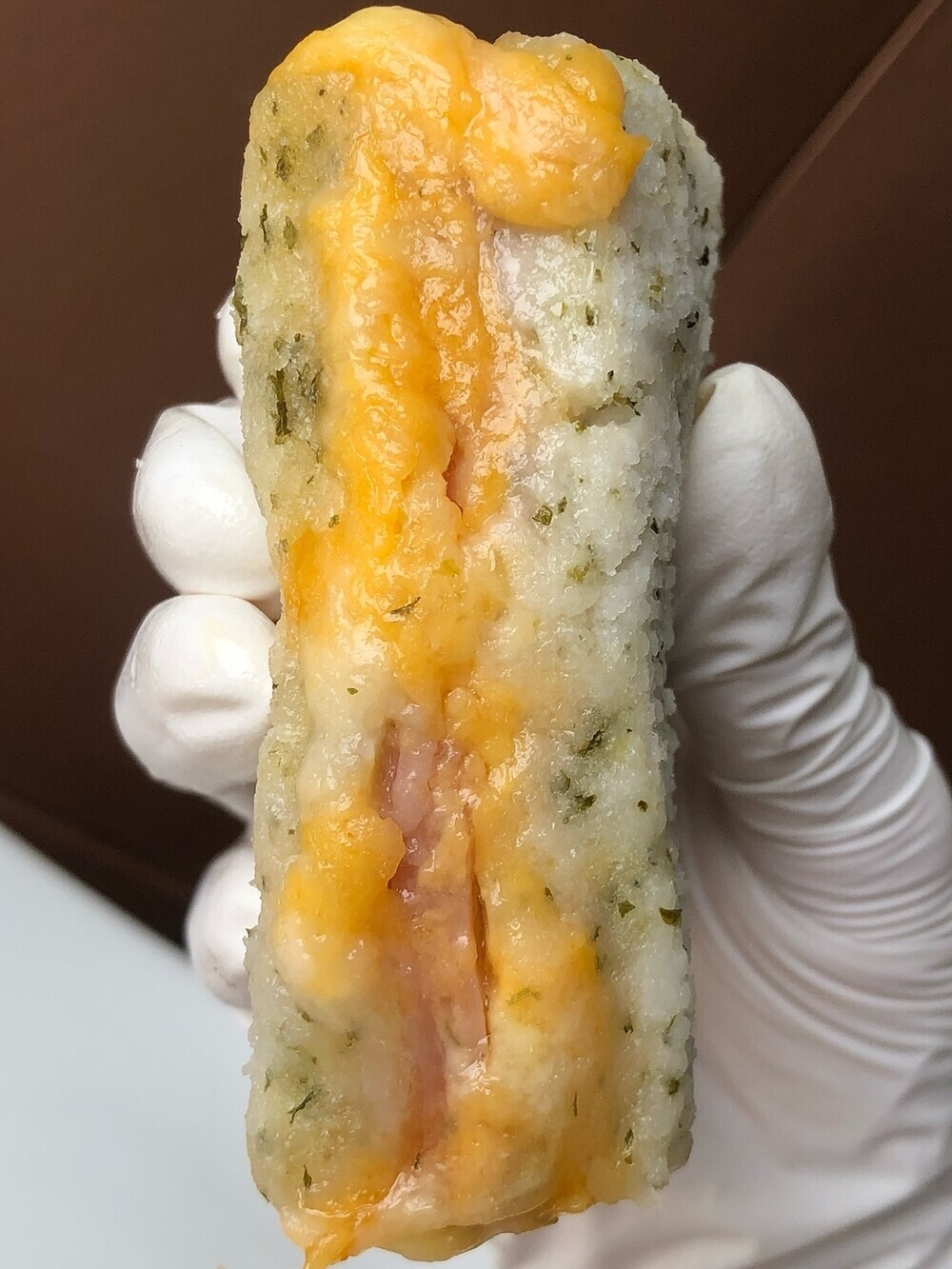 상품명: 햄치즈 설기 내용량: 1팩 80g±10g 원재료명 및 함량: 멥쌀(국산)40% 모짜렐라치즈10%-자연치즈99.3%[모짜렐라치즈(독일산){우유,배양액,정제소금,응고효소}]분말셀룰로스 , 레드체다치즈10%-자연치즈99.3%[체다치즈(미국산){우유,정제소금,배양액,우유응고효소,수용성안나토(착색료)}]분말셀룰로스 스모크햄 30% {돼지고기84.6%[지방일부사용,외국산(미국,벨기에,스페인 등)-75%, 국산-25%] 정제수, 옥수수전분[옥수수:외국산(러시아 등)], 양파(국산),함수결정포도당, 정제소금, 오뗄스모크햄복합하이프로, 대두단백, 유청분말, 두잇복합인산염(혼합제제-폴리인산나트륨,메타인산나트륨,피로인산나트륨),하이브로1,난백분말,소브산칼륨(보존료),햄레드C(혼합제제-무수결정포도당,구연산삼나트륨,덱스트린,팽창제,코치닐추출색소),비타민C, 설탕, 백후루, 아질산나트륨 (발색제)}설탕5% 천일염 정제수