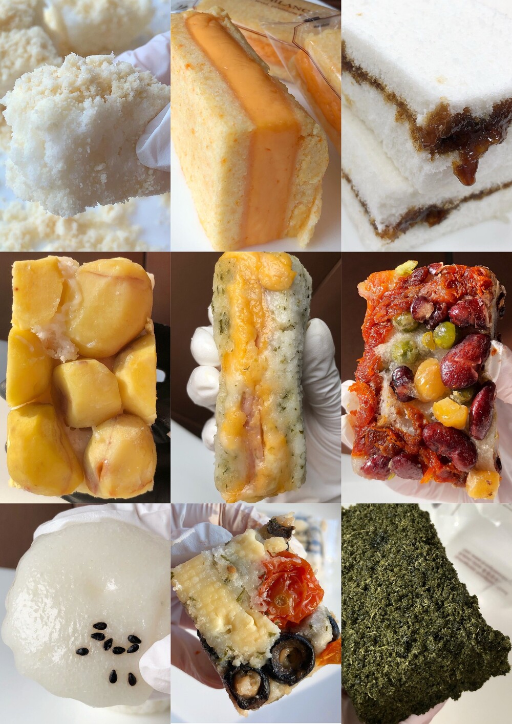 흑당 꿀설기, 쑥 설기, 햄치즈 설기,