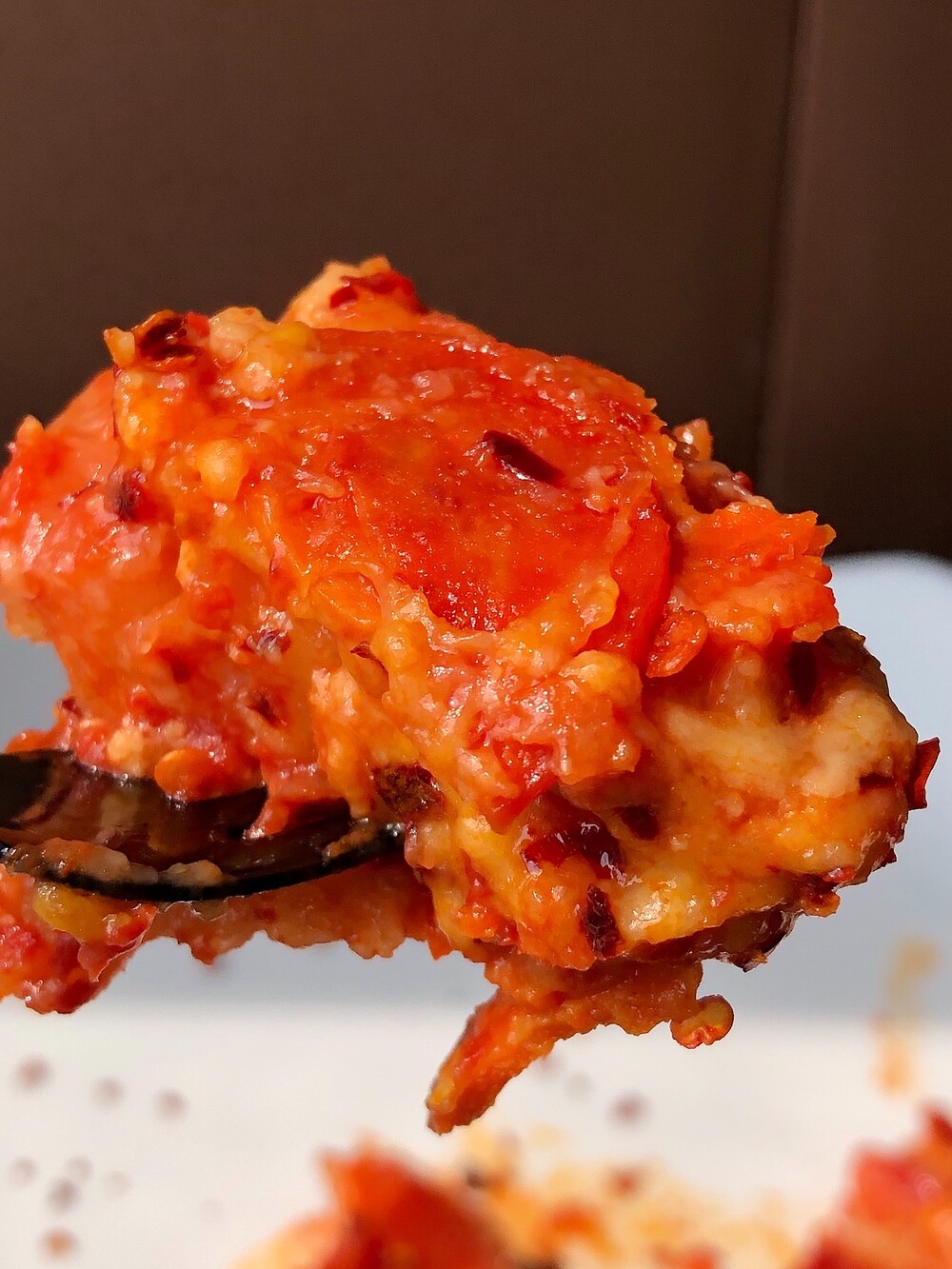 따끈하게 데워 부드럽게 즐기셔도 좋고 여기에 핫소스 톡톡 뿌려서 먹으면 참 별미지요. 특히 페퍼로니 설기 데우면 치즈가 사르르 녹는데 여기에 크러쉬드 레드페퍼 톡톡 뿌려서 먹으면 환상이에요. 에어후라이어에 구우니 겉은 바삭해 지니 페퍼로니 풍미가 더욱 풍성합니다.