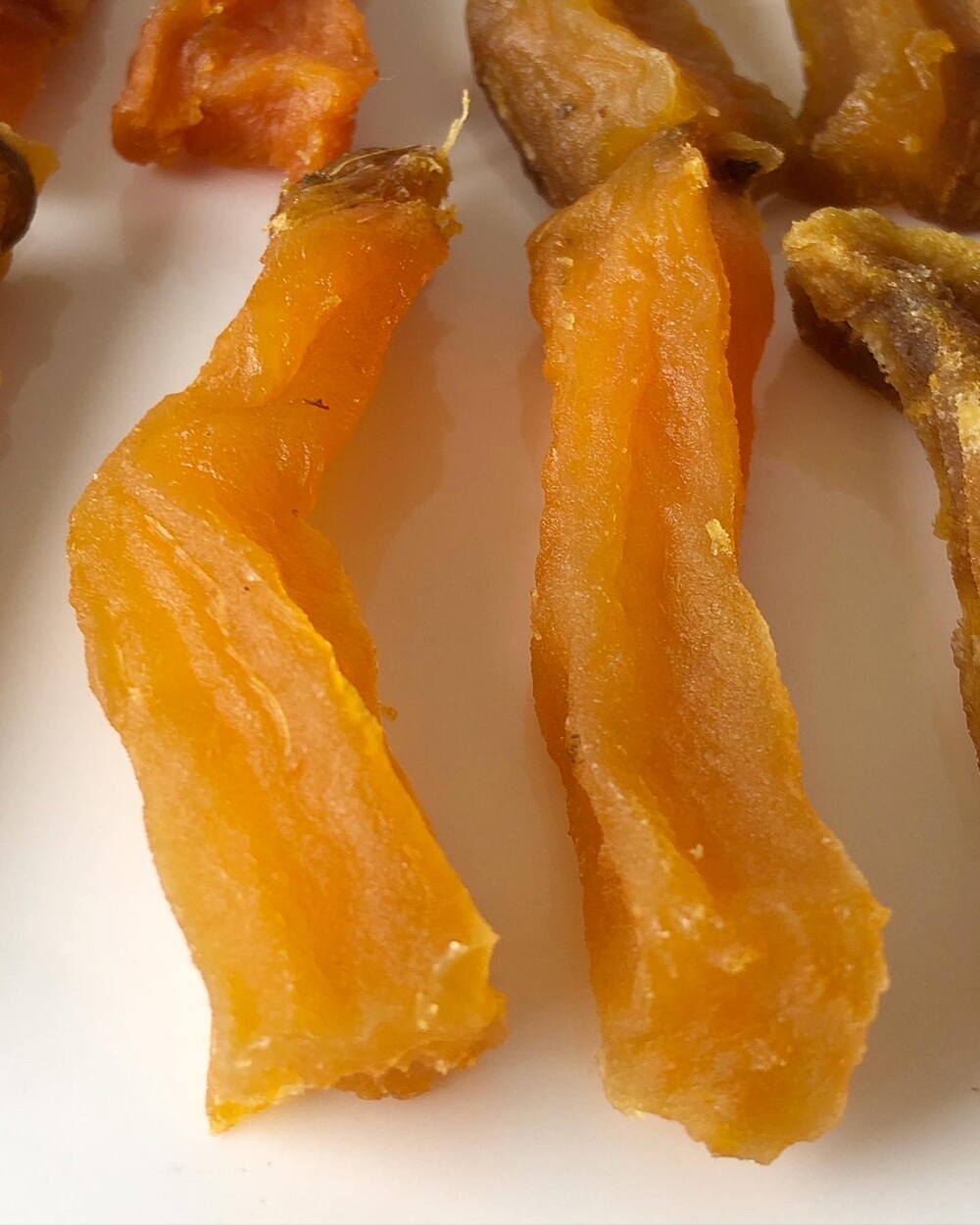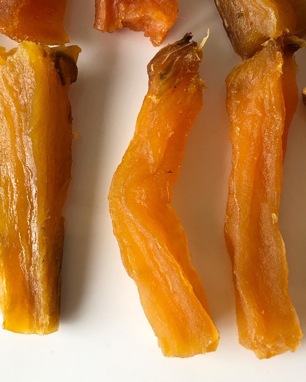 이렇게 꾸덕하고 쫀쫀하고 호박 고구마의 당도를 좋아하시는 분에겐 정말 딱! 찰떡일거예요. 단 공장에서 막 나오는 그런 말랭이처럼 무지 예쁘거나 일률적이지 않아요. 왜냐면 큰 고구마를 막 말리는 게 아니라 저희는 정말 당도 딱! 높은 적정 크기의 호박고구마를 컷팅하여 말렸거든요. 나 이런 취향이야! 하시는 분들에겐 정말 좋을거예요. 한팩만 드셔도 든든한 간식, 식사대용이 될거예요.