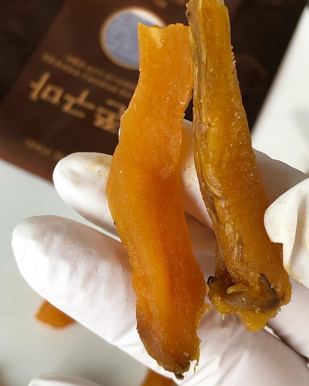 홍블랑푸드의 고구마 말랭이, 꿀쫀구마는 황토 호박 꿀고구마로 제조되었어요. 그래서증말 이 당도는 인위적인 당도? 요즘 개량한 고구마의 당도? 이런 단맛이 아닌 정말 깊은 황토 호박 고구마의 진득한 당도 아실까요? 이 완벽한 고구마를아주 쫀득하고 촉촉하게 말린 정말 고구마 말랭이.