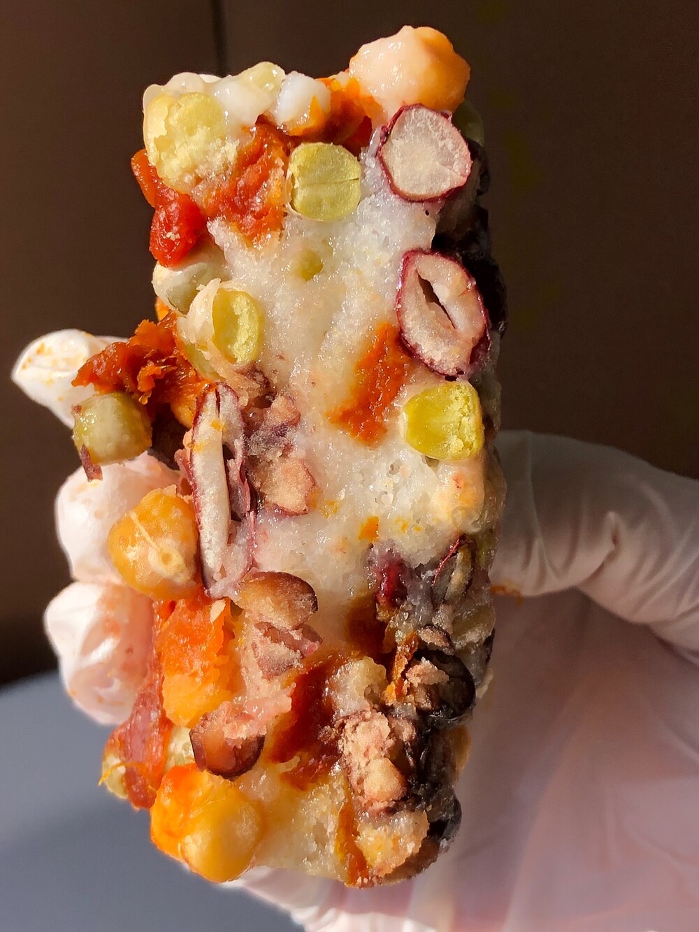 이번 영양 찰설기에는 절인 병아리콩, 완두, 강낭콩, 통팥, 그리고 호박고지를 아낌없이 듬뿍 담았습니다. 담백한 병아리콩, 고소하며 파근파근한 강낭콩, 달큰한 완두콩과 팥, 말려진 호박고지에는 단맛이 자연스럽게 농축되어 있어 씹을수록 호박 특유의 깊고 짙은 단맛이 은은하게 퍼집니다.