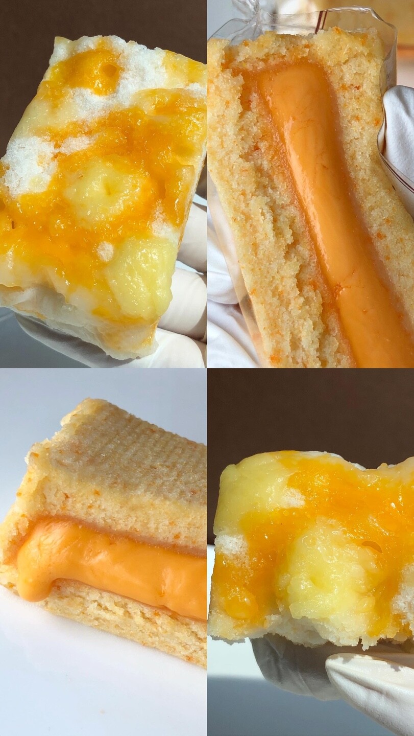 (설기 부분, 즉 쌀가루 반죽 시, 체다 치즈 파우더와 천연치자가루를 넣고 함께 반죽하여 치즈 풍미를 더욱 살렸습니다)