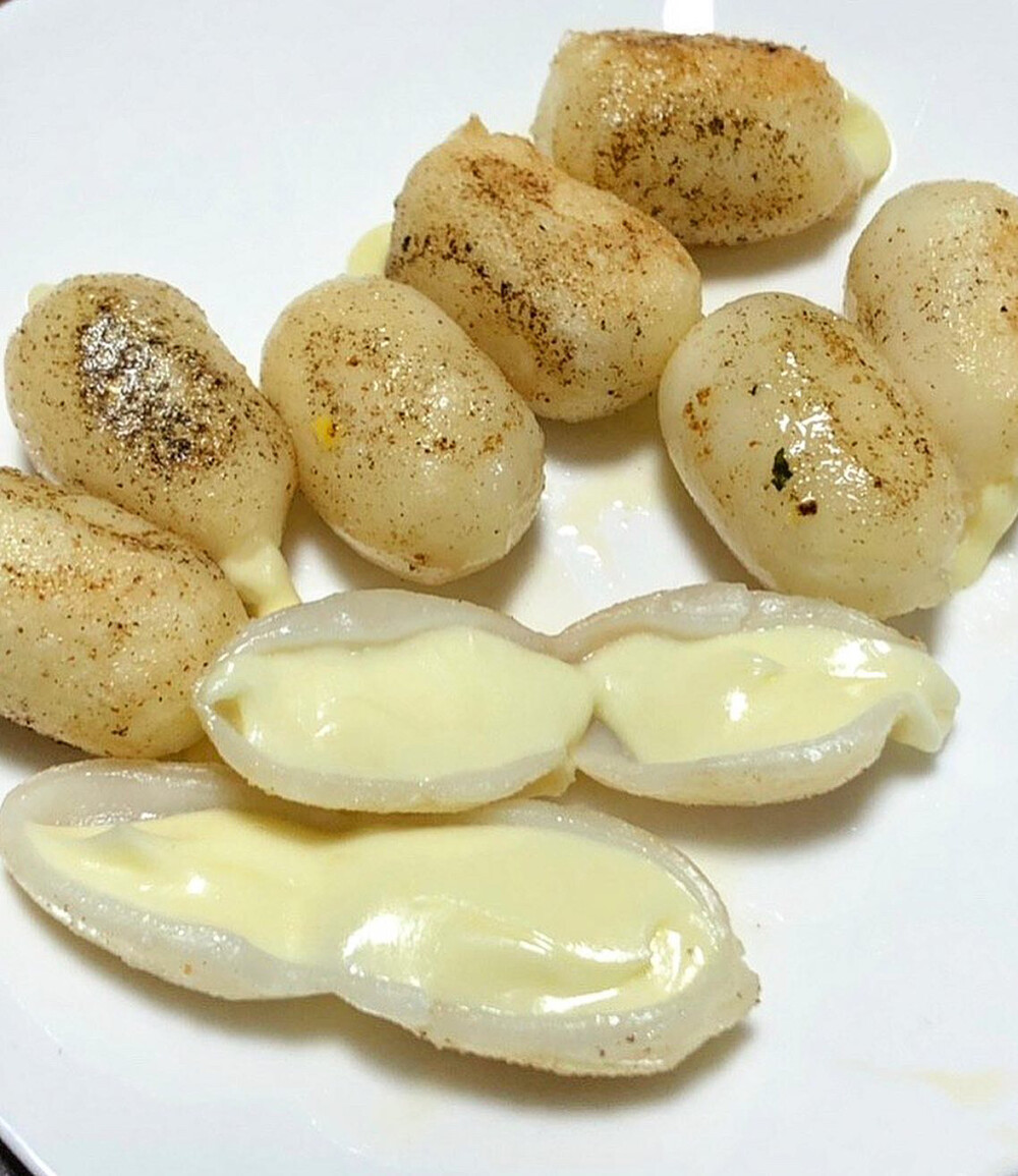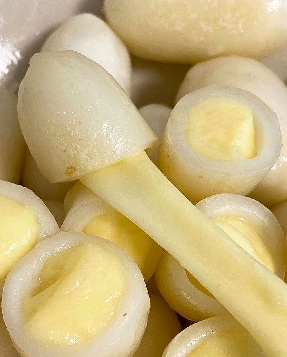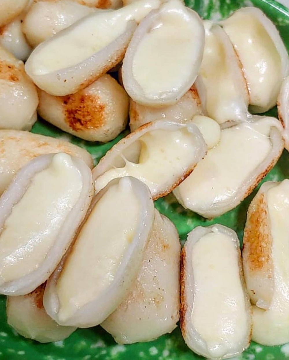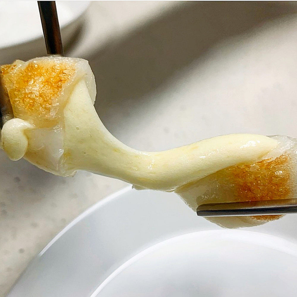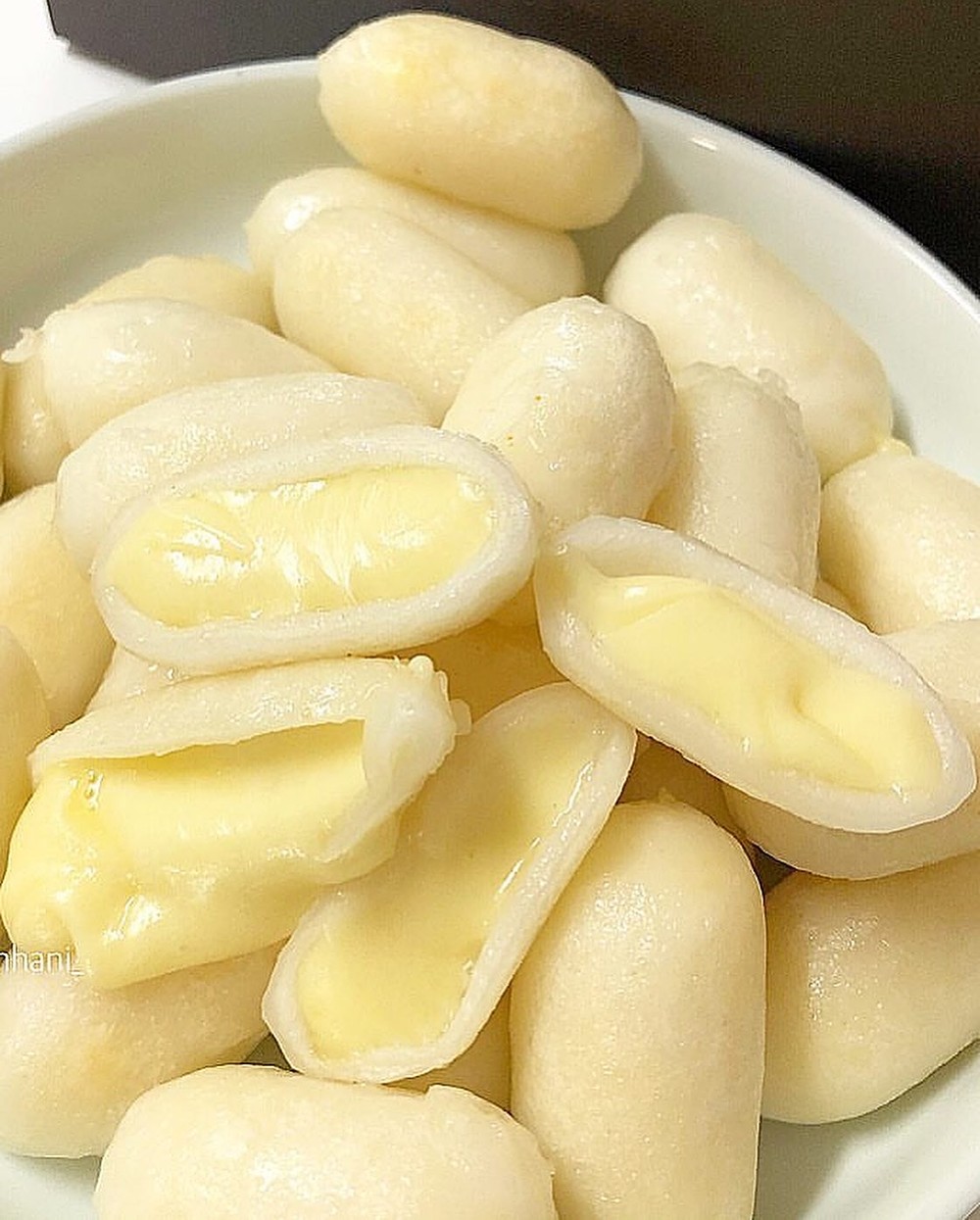 떡을 아주 보드랍고 쫀득하게 쫄깃하게 표현하기 위해 곱고 고운 쌀가루로 빻아 아주 섬세하게 반죽을 한답니다. 이 얇고 얇은 떡에 리얼 듬뿍 모짜렐라 치즈를 아낌없이 가득 잔뜩 채웠습니다. 자연치즈99% 치즈를 고집하는지라 깔끔하게 아주 담백하고 고소하지요. 한입 베어 물면 쫄깃한 떡 사이로 치즈가 입안 한 입 가득 채워지도록 스르륵 흐르며 쭉 늘어나니 이 매력에 포옥 빠질 수 밖에 없답니다.