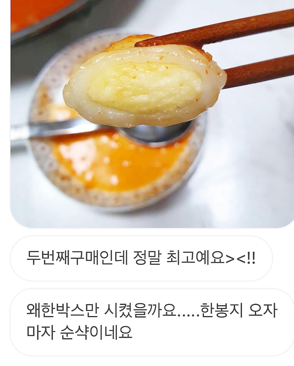 받아보시면 떡을 가로 세로 뚝 잘라보세요. 치즈 듬뿍, 직접 눈으로 맛으로 확인해주세요. 아주 넉넉하게, 굉장히 가득 듬뿍 들어있는 치즈 확인해 주세요.