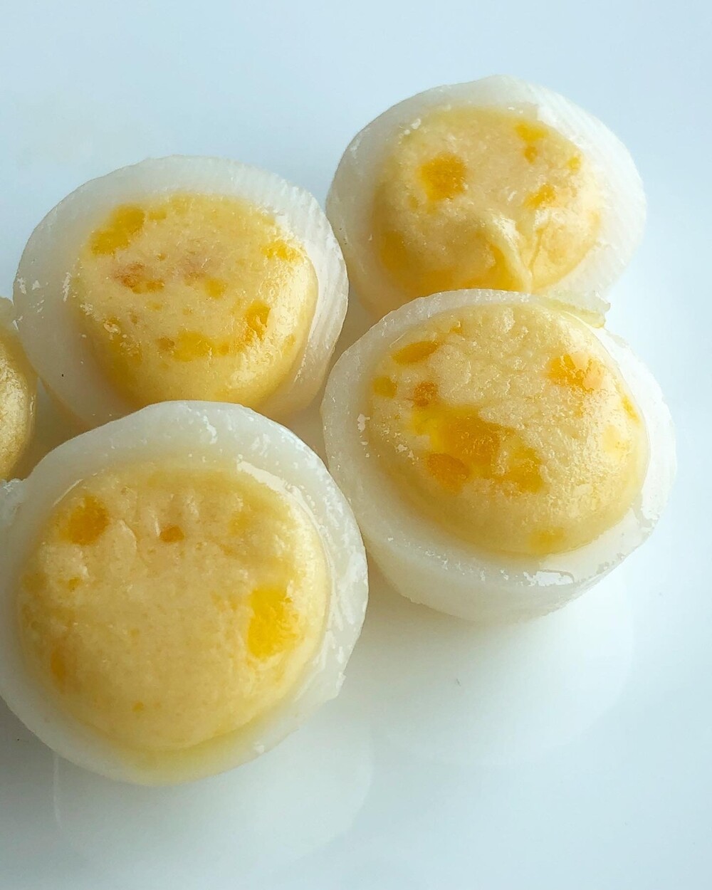 7) 리뉴얼 된 체다렐라 치즈떡 참고해 주세요. 쌀가루와 치즈의 분말을 같이 반죽하여 쫀득한 떡에서도 은근한 치즈의 풍미를 느낄 수 있답니다. 하단 이미지 모두 리뉴얼 전 이미지입니다.