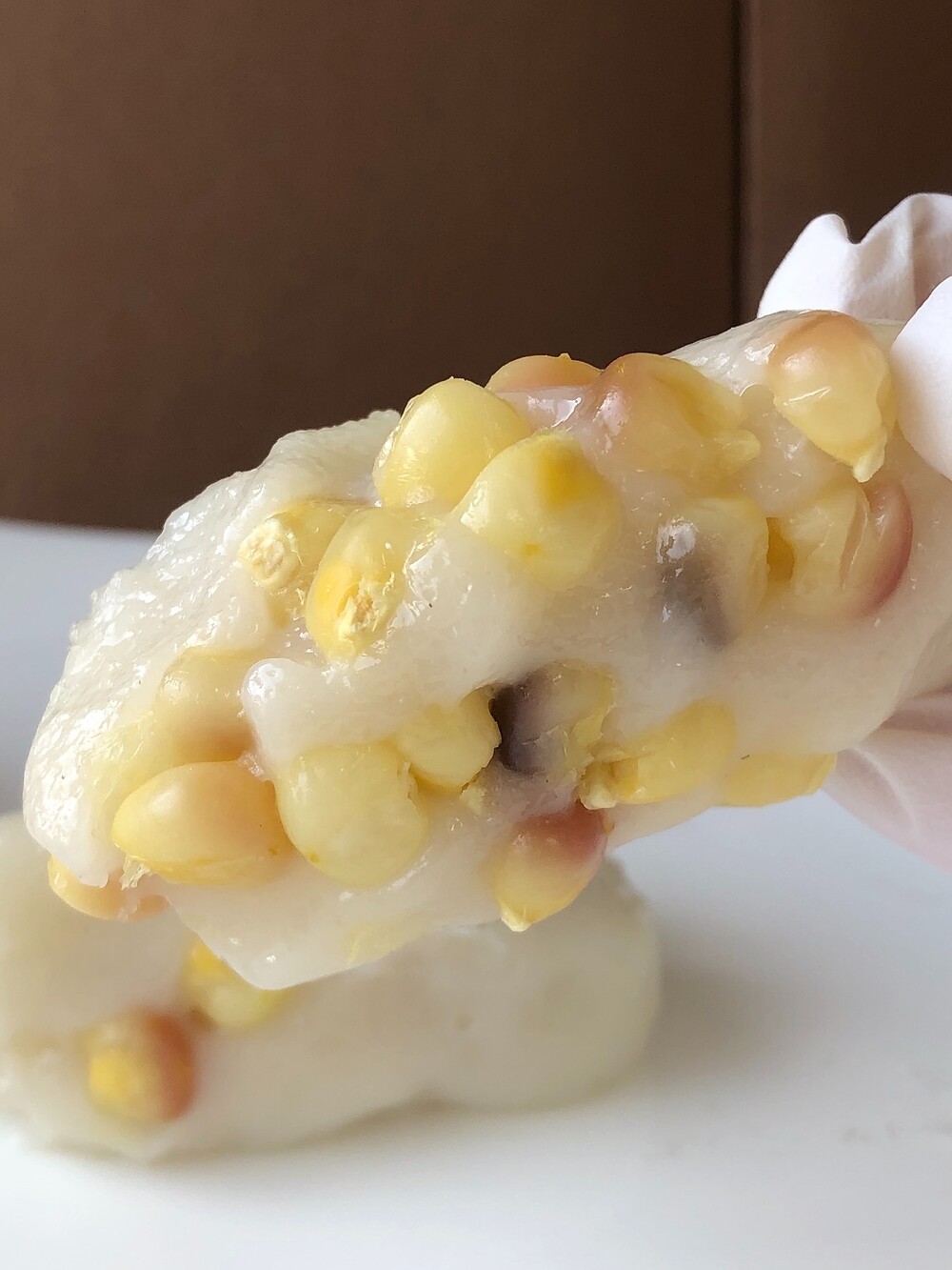 포슬한 설기와는 다르게, 찰옥수수와 가장 잘 어울릴 수 있도록 반죽은 더욱 쫀득하게. 옥수수를 듬뿍 넣어 수제로 빚어내 촘촘한 밀도와 깊이 있는 탄력을 완성했습니다. 씹을수록 또렷해지는 고소함과 차분한 단맛이 입안 가득 퍼집니다.