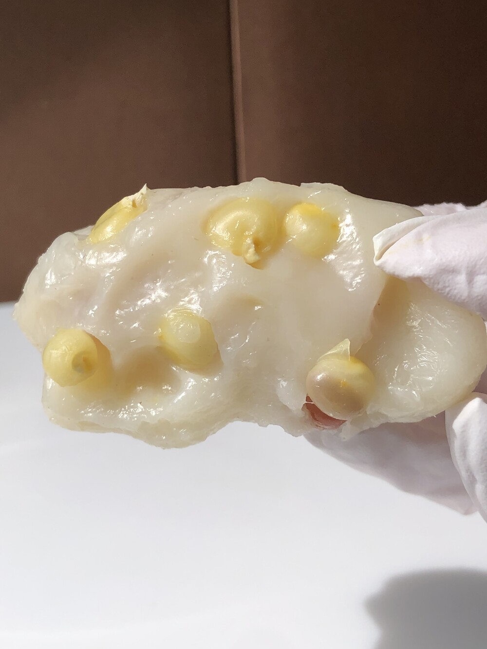 싱싱한 국산 서리태 역시 아낌없이 담았습니다. 본연의 은은한 달큰함과 고소함, 그리고 담백함. 절이지 않은 콩을 사용해 설탕의 단맛이 아닌 콩 자체가 지닌 고요한 풍미를 그대로 살렸습니다.초록빛 속살은 씹을수록 차분한 단맛을 남기고, ㅜ쫀득하게 빚은 떡 반죽과 어우러져 과하지 않은 품위 있는 여운을 완성합니다.