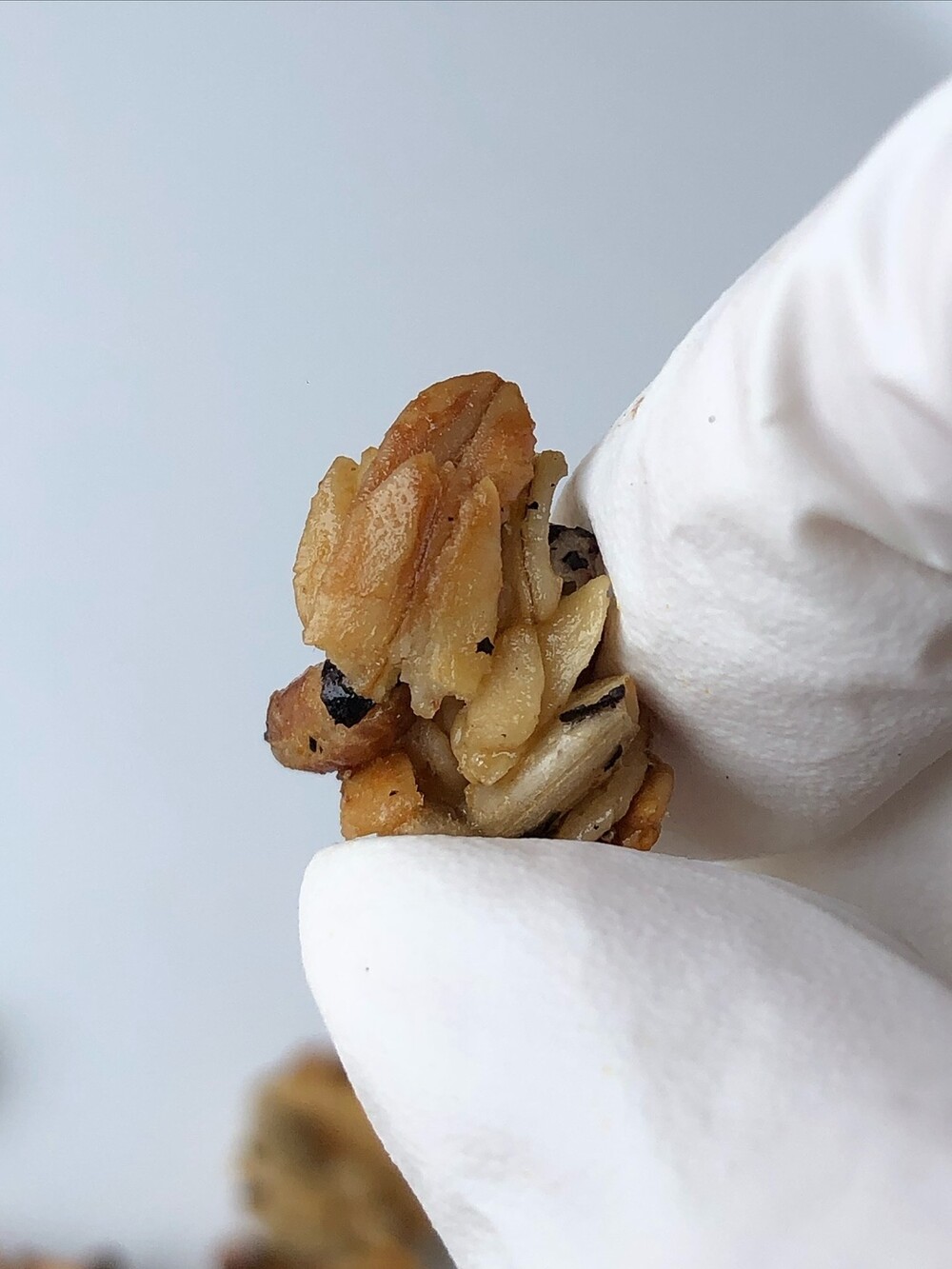 딱딱한 그래놀라보단 조금 더 부드럽고 건강하지만 풍성한 맛 그리고 곡물 하나하나에 특별한 자신감을 가지고 있는 그러한 그래놀라를 원하여 준비했는데 잘 완성된 것 같습니다. 은은한 버터 풍미가 아주 예술이고요. 고급스러운 달콤함은 국산 벌꿀과 유기농 아가베 시럽과 프락토 올리고당으로 표현하였습니다.