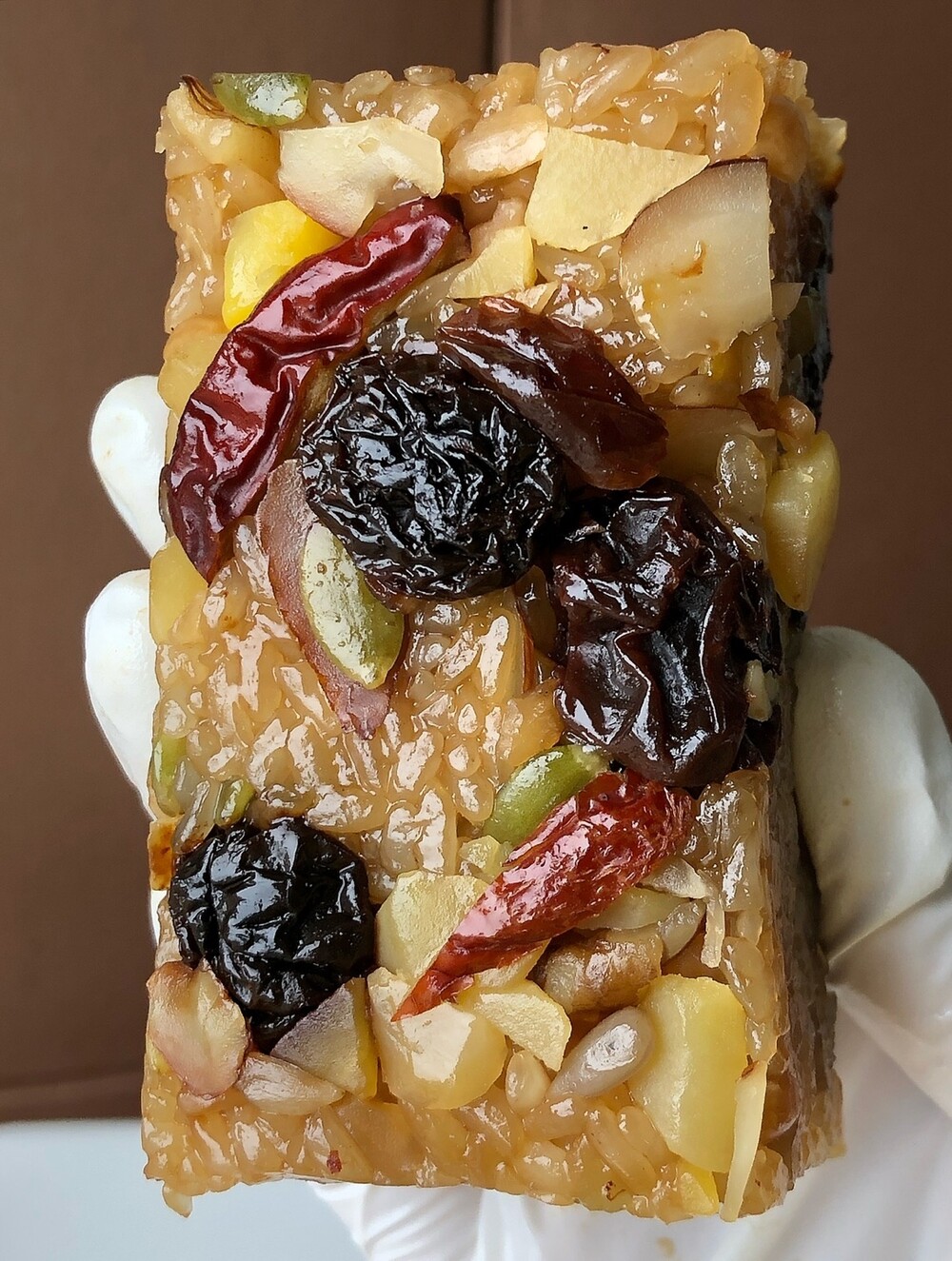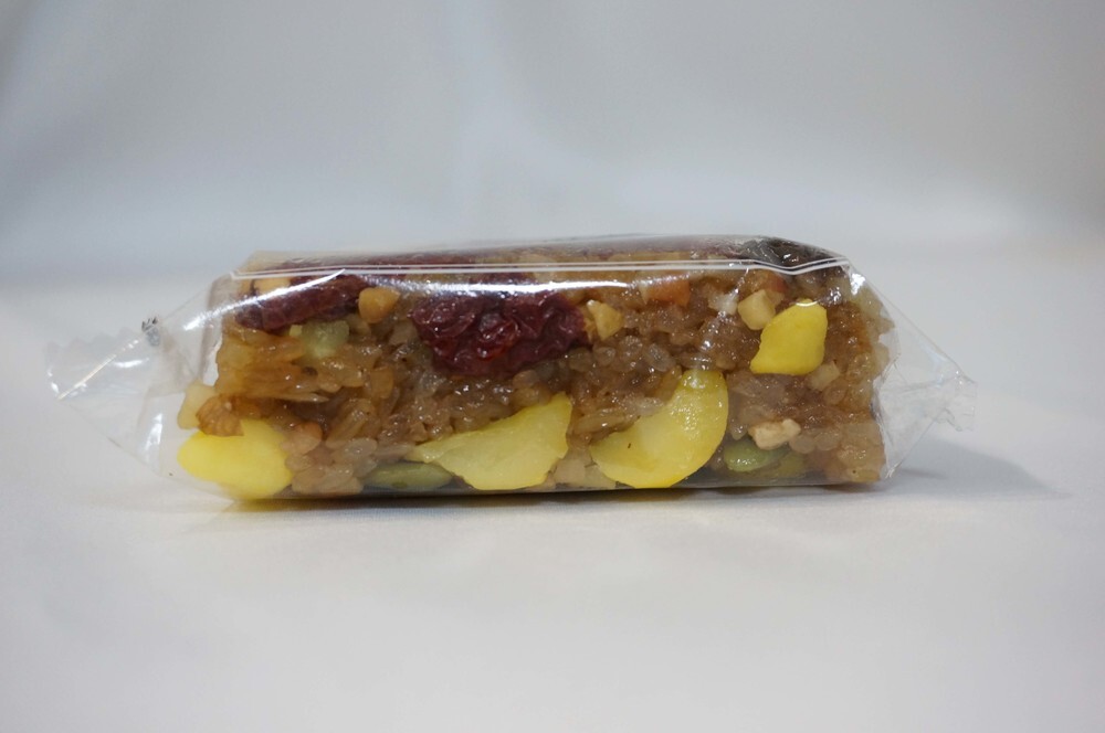 원재료명 :현미찹쌀60%(국산) 밤(국내산) 호박씨(미국산) 해바라기씨(불가리아) 땅콩(미국산) 호박씨(중국산) 아몬드(미국산) 건포도(미국산) 대추(국내산) 흑설탕, 천일염, 참기름(중국산)