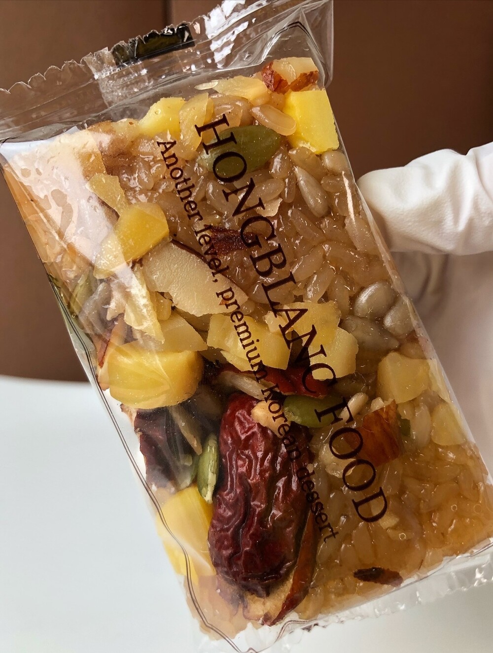 제조명:현미약밥 식품유형:떡류 업소명:홍블랑푸드 내용량:1box 12ea 총 1kg
