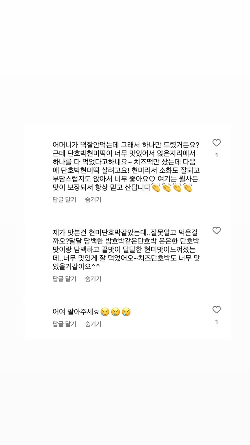 받으신 떡은 바로 드실 수 있는 상품이 아닙니다. 냉동입니다. (부득이하게 날씨로 인해 살짝 녹을 수도 있어요. 하지만 수분량을 조절하고 있고 아이스팩 아이스박스를 사용하는지라 걱정하지 않으셔도 되어요)