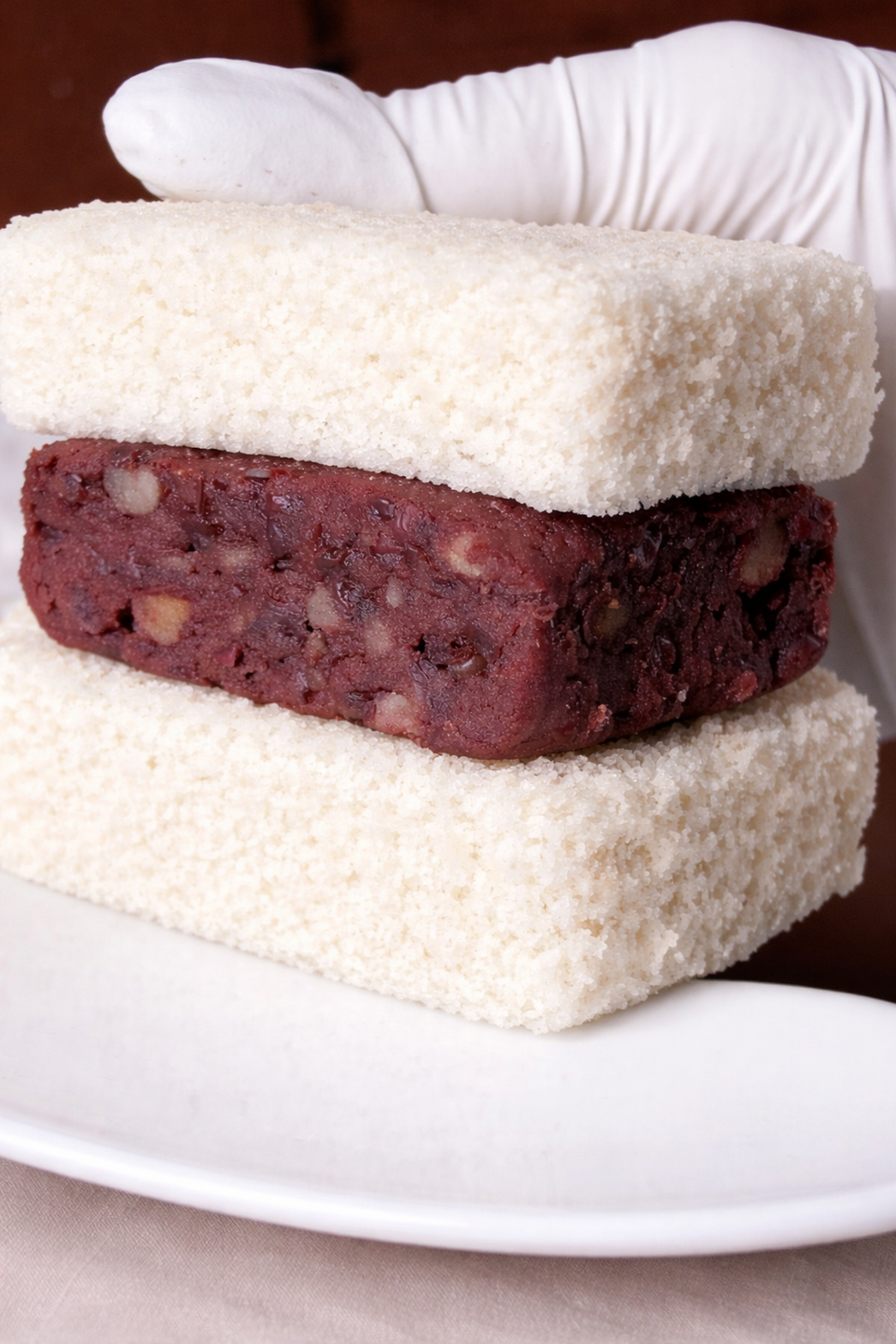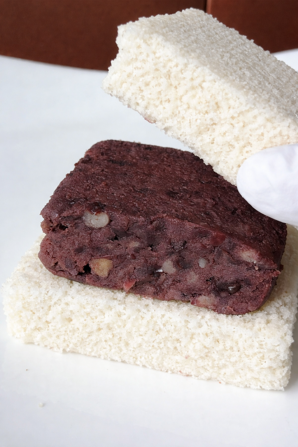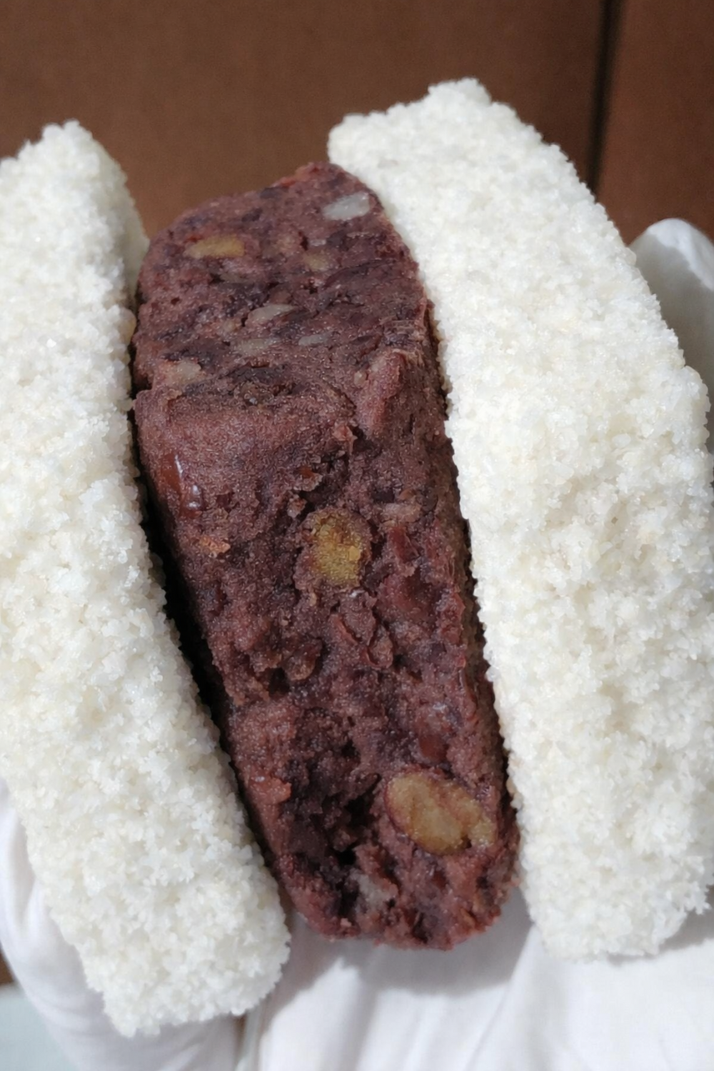 잘 데워진 두 개의 설기 사이에 자연 해동한 앙버터를 쏙 넣어서 함께 즐겨주세요.