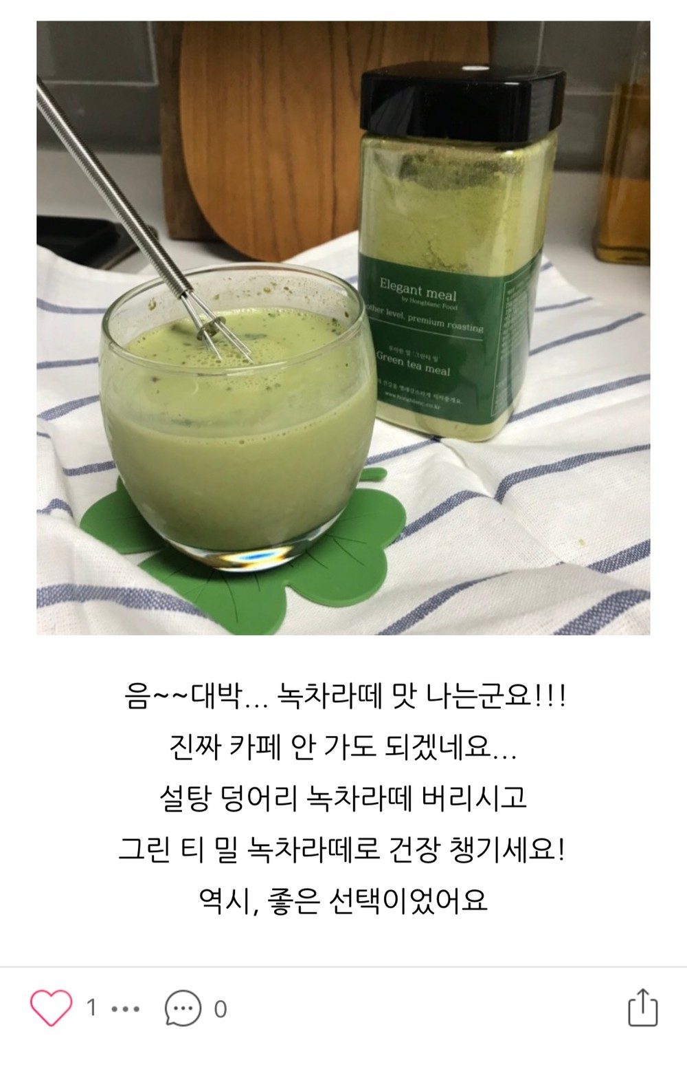 보성녹차로 맛을 낸 리얼 그린티라떼맛. 이제 그린티라떼 대신 건강한 그린티 밀로. 그린티라떼를 좋아하시는 분들에게 추천드려요 , 카페가셔서 녹차라떼 드시지 마세요. 아 까 워 요 ! 리얼 고급 그린티 라떼를 드셔야지요. 좋은 재료 가득 들어있어 고소하고 깊은 녹차라떼. 하이퀄리티 우아한밀 통곡물 가루에 진한 풍미의 녹차가루의 조합은 고급스러운 그린티라떼 맛이예요.