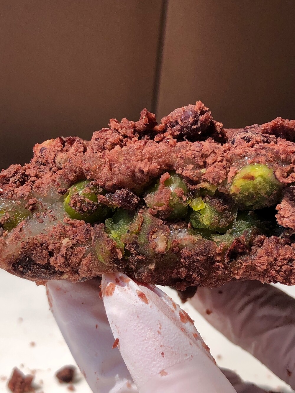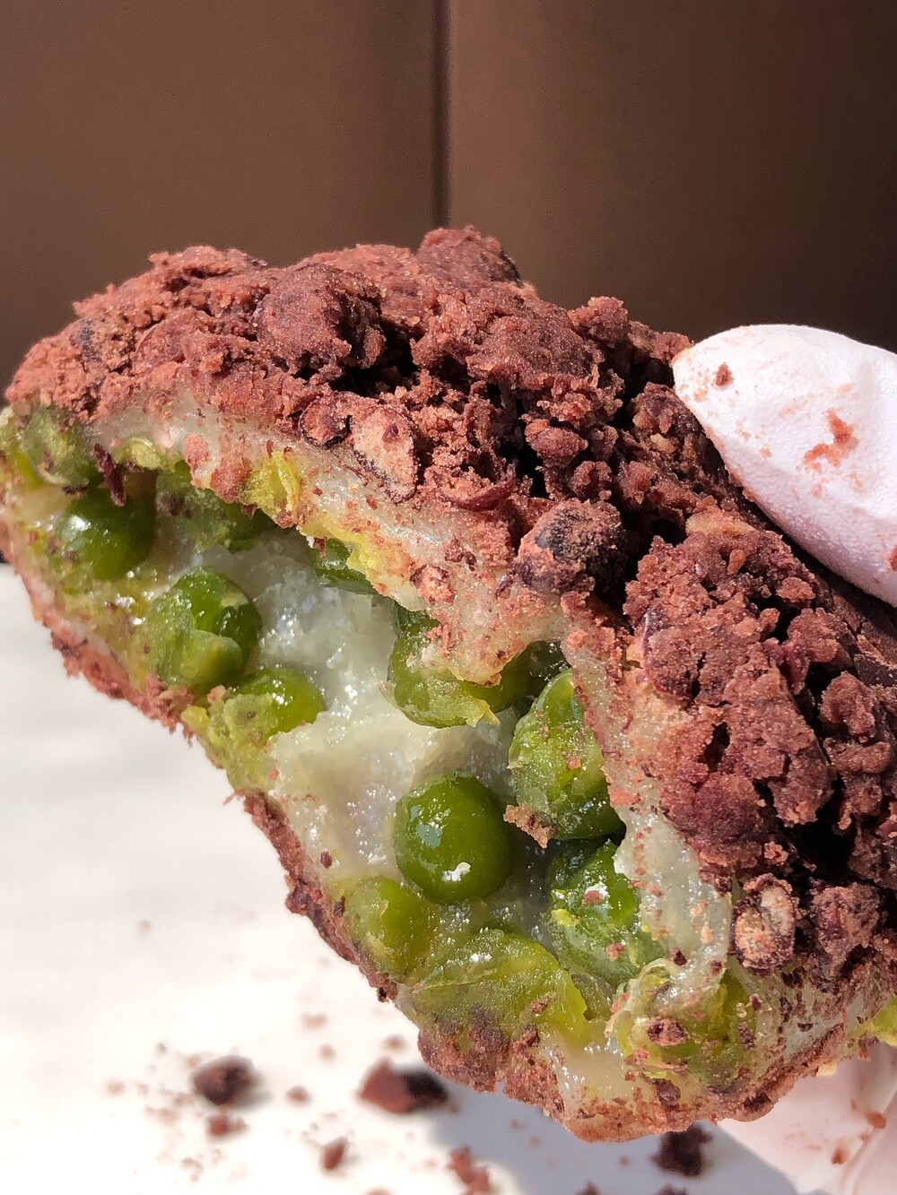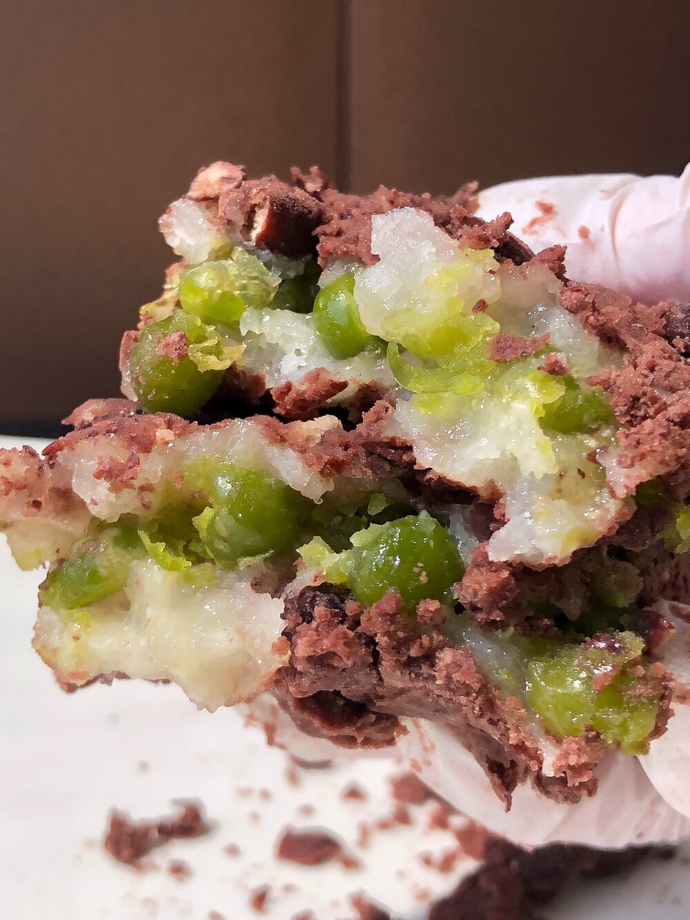 완두 시루떡엔 완두배기를 가득 넣어요. 부담스러운 완두의 풍미와 식감이 찰기 가득한 찰설기와 보드라운 팥과 어울릴 수 있도록 쫀득하고 비교적 뭉근하게 만들지요.