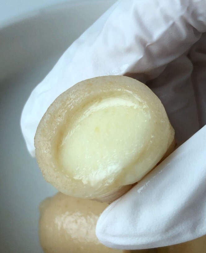 백미는 사용하지 않고 오롯이 현미 100%로 고운 쌀가루를 빻아 부드러운 반죽을 했지요. 현미라고 생각하면 구수함이 아주 일품이지만 백미보다는 비교적 거칠지 않을까라는 생각이 들어요. 그러나 홍블랑의 현미 시리즈 드셔보신 분들은 아시겠지만 이 현미를 더욱 곱고 곱게 하기 위해 아주 작은 입자의 쌀가루로 많이 치대고 또 치대거든요. 그러기에 현미임에도 불구하고 얼마나 보드랍고 쫄깃한지 몰라요. 백미의 깔끔한 맛도 너무 좋지만 현미의 구수함과 치즈의 고소함과 담백함이 얼마나 고급스러운 풍미를 자랑하는지 꼭 느껴보세요. 이 현미에 참 괜찮은 이 풍미 그윽한 치즈를 아낌없이 잔뜩 가득 채우니 너무 만족스럽습니다.
