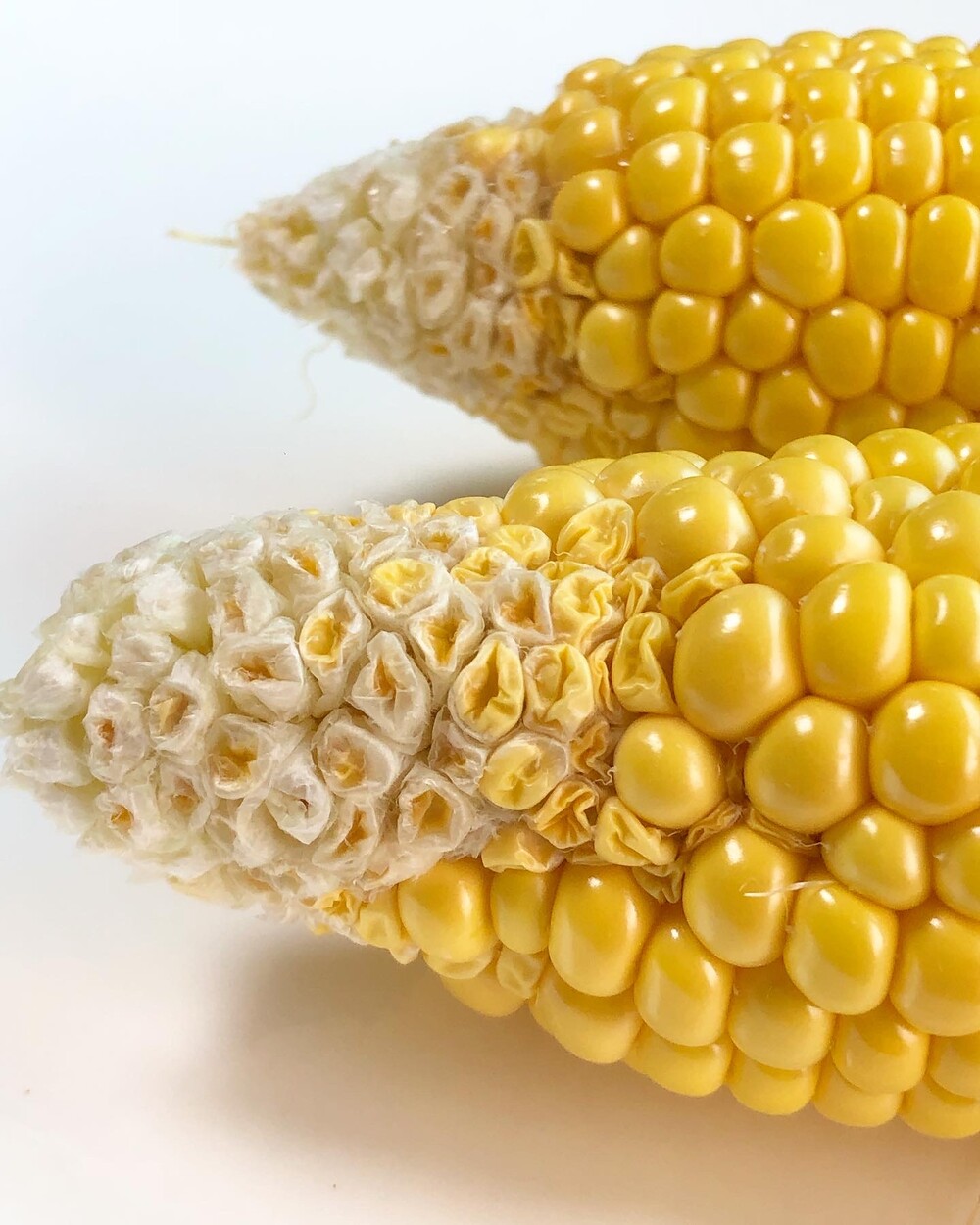 끝달림이 없어요. 초당 옥수수는 끝달림이 어려운 품종으로 일반 옥수수와 다르게 끝 부분까지 알맹이가 달리기 힘듭니다. 옥수수 끝부분 알맹이의 모양과 크기가 일정하지 않을 수 있으며 드문드문 옥수수 알갱이가 없을 수 있어요.