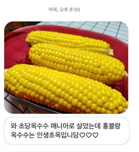 마약 옥수수, 콘치즈, 옥수수 솥밥, 옥수수 주먹밥 등