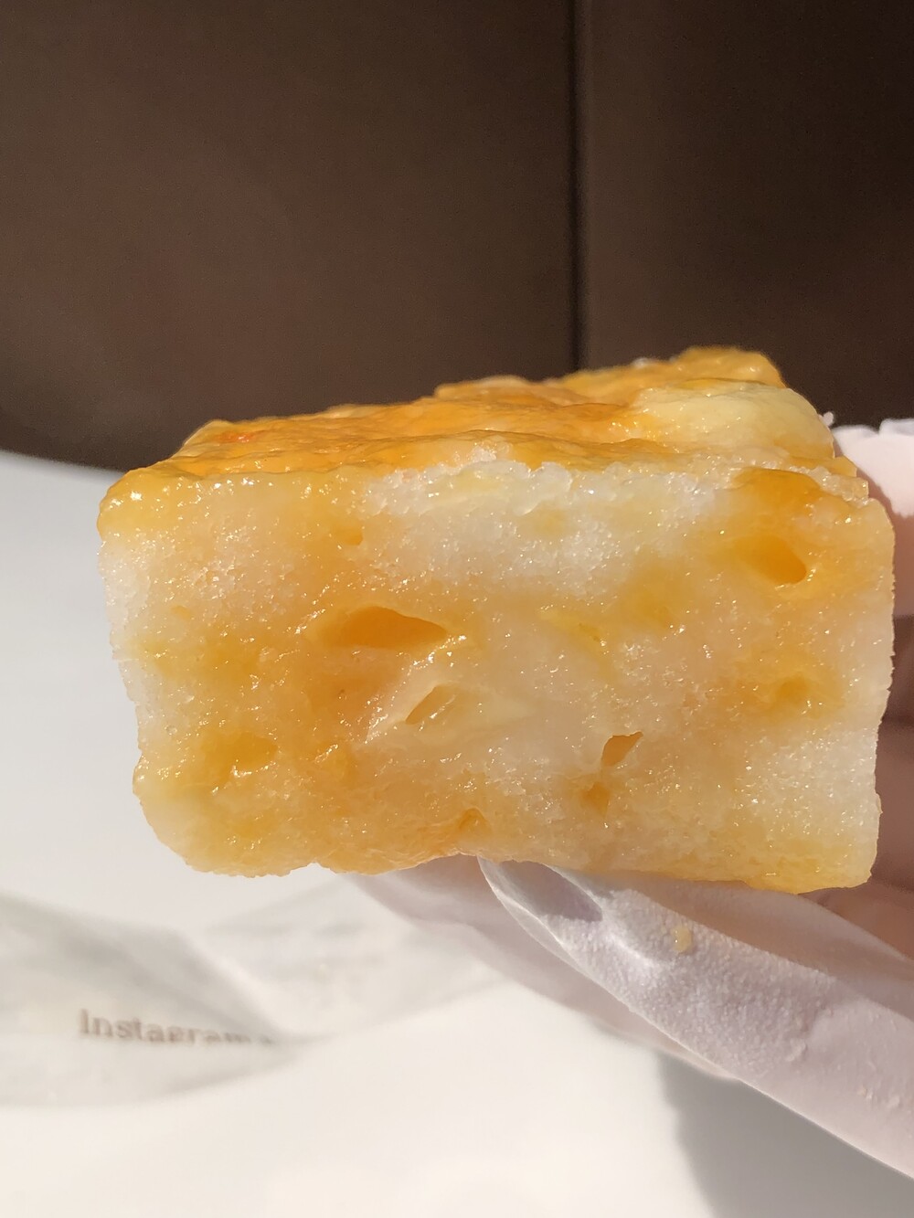 각각 다른 매력의 3종 치즈가 들어있어 녹진한 담백함과 고소함, 쫀득함과 쫄깃함, 그리고 보드라움까지 갖추어 참 매력적이에요. 따끈하게 데우면 3종 치즈가 스륵 녹으면서 크나큰 퍼포먼스를 보여주는데 이때, 이 보드라운 설기에 스륵 스며들면서 치즈 풍미를 아주 곱디곱게 잘 나타냅니다.