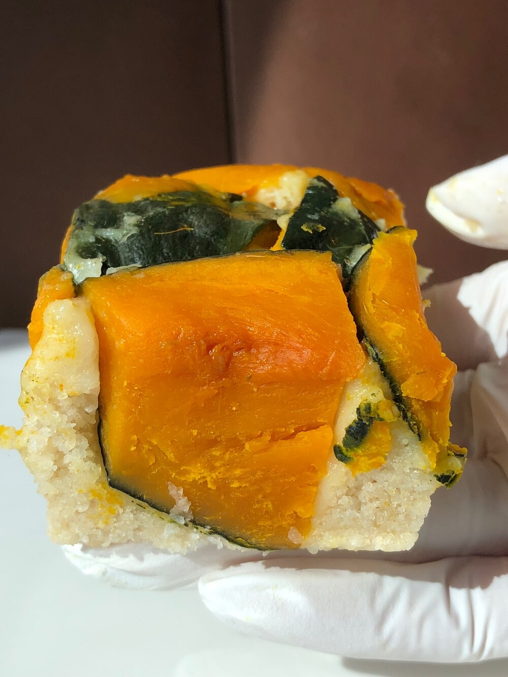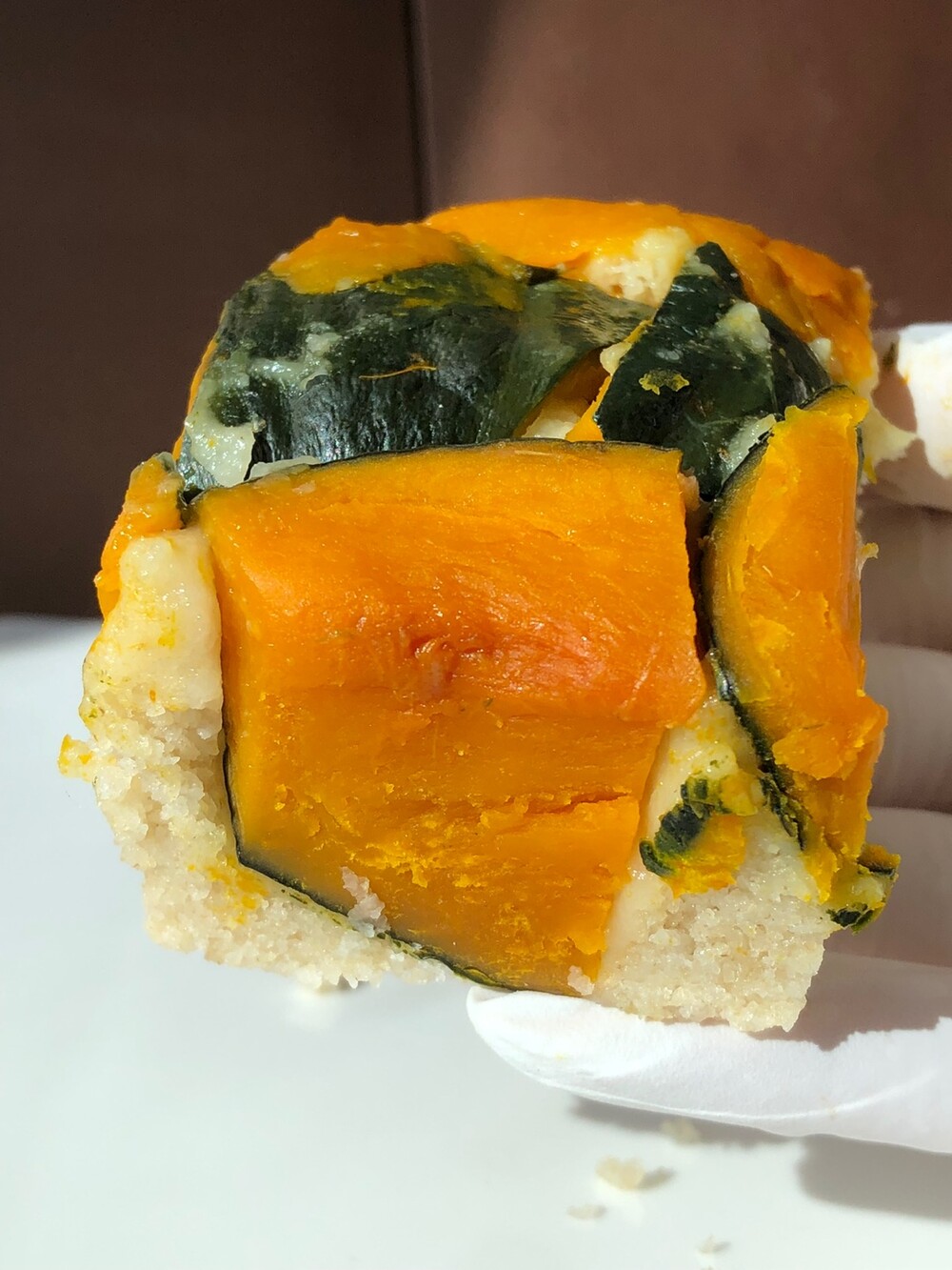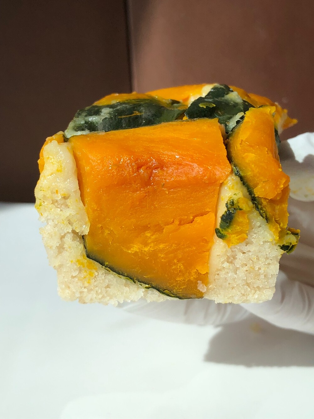 이러한 담백하고 진실된 설기를 쪄 보니 아주 홍블랑스럽더라고요. 일반 밤호박 설기는 아주 깔끔하여 보드랍고 쫄깃해요. 밤호박 치즈 설기는 조금 더 화려한 맛이라 촌스러운 밤호박을 세련되게 빛나게 해주며 밤호박 치즈의 찰떡궁합을 제대로 나타내고 있지요.