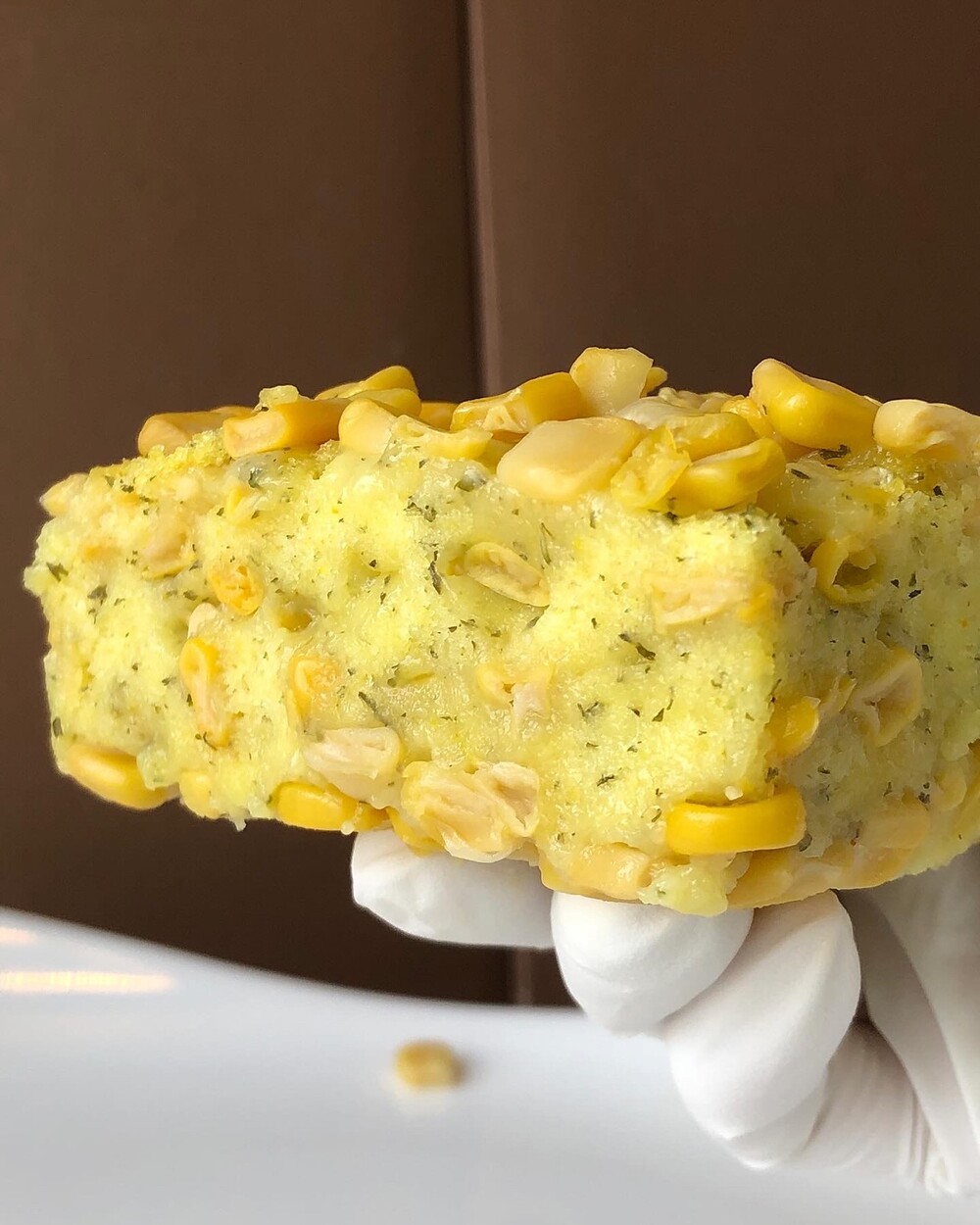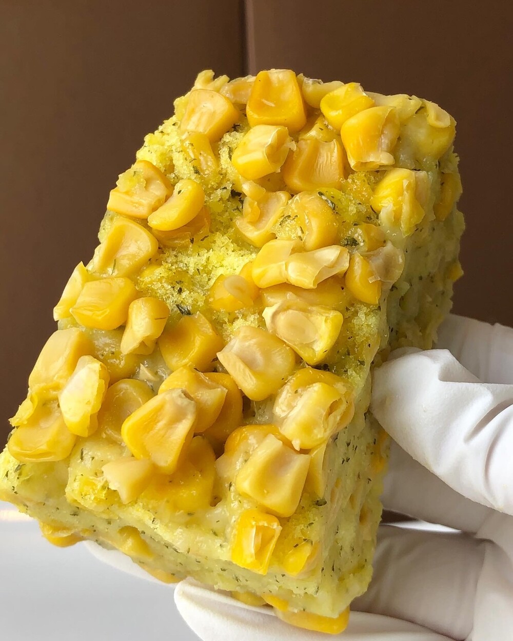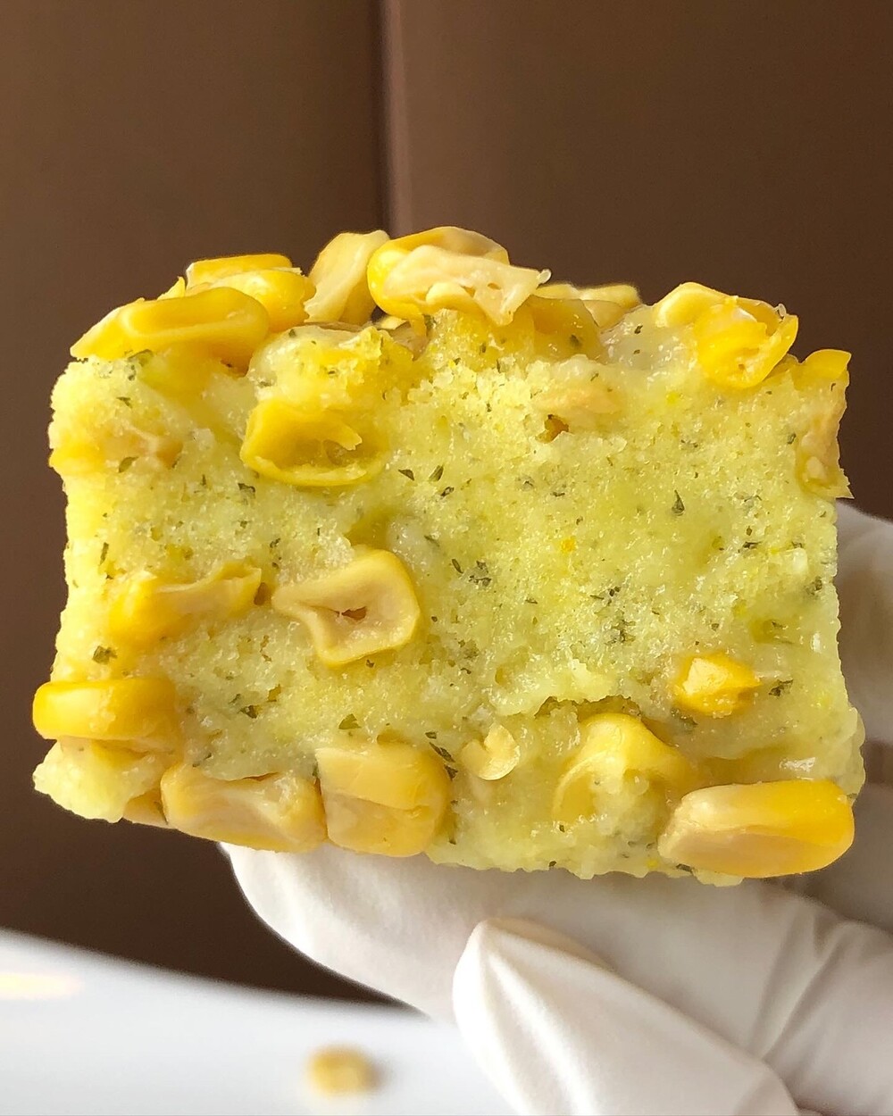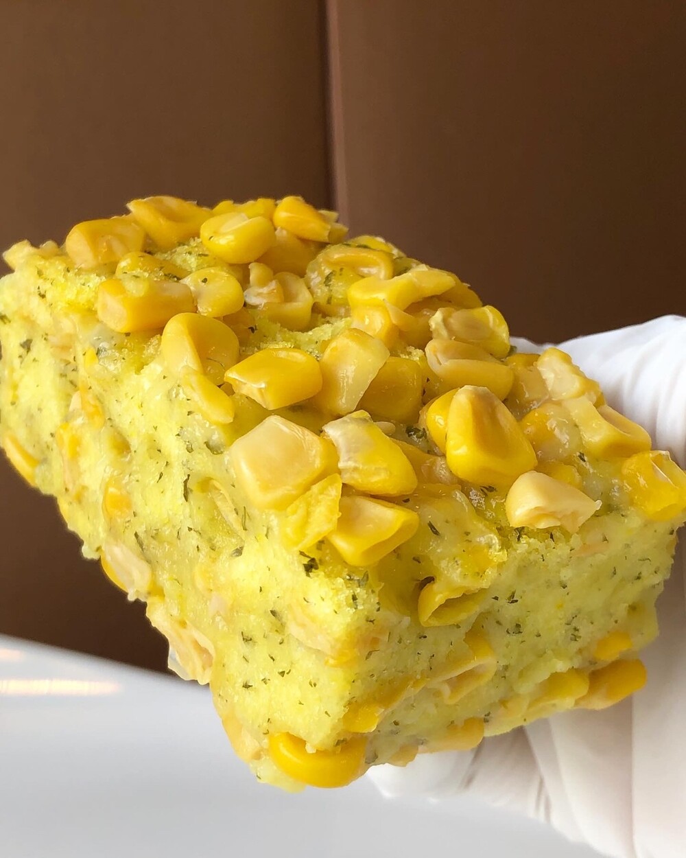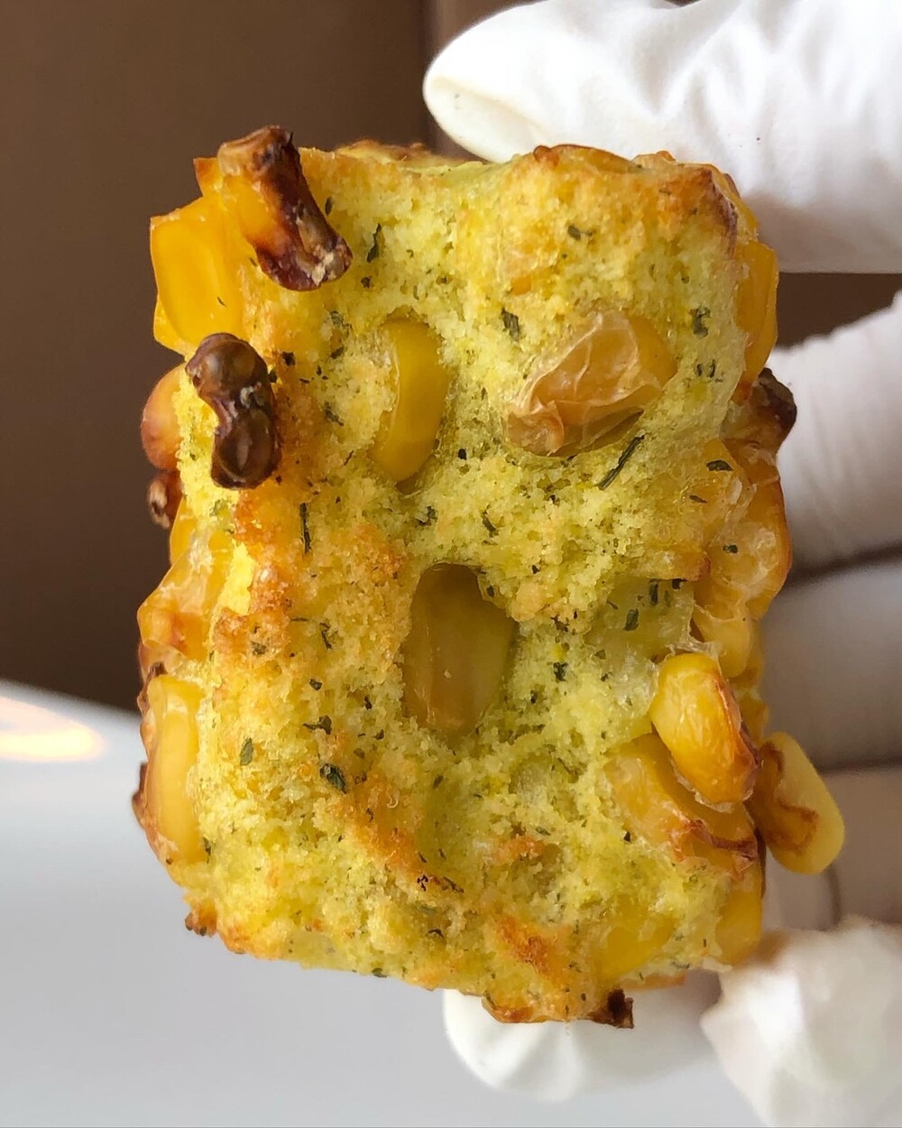옥수수 통조림의 종류가 이렇게 많은지 몰랐지요. 10가지 넘게 테스트를 했답니다. 쌀가루 그리고 물 반죽의 조합 그리고 옥수수의 탱글함에 가장 집중을 했습니다. 고심 끝에 딱 결정된 이 옥수수, 겨우 구해서 만들어 봤지요. 이 탱글함을 살리고 싶었고요. 쫀득한 설기와 먹었을 때, 과즙 팡팡 나오면서 아주 녹진한 풍미를 표현하고 싶었습니다.