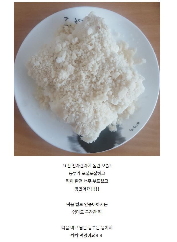상품을 수령하신 후, 꼭 데워드세요. 용기에 올린 떡을 데울 시, 렌지용 뚜껑을 꼭 덮고 데우셔야 해요. 그리고 수분을 위해물한컵과 같이 데우기