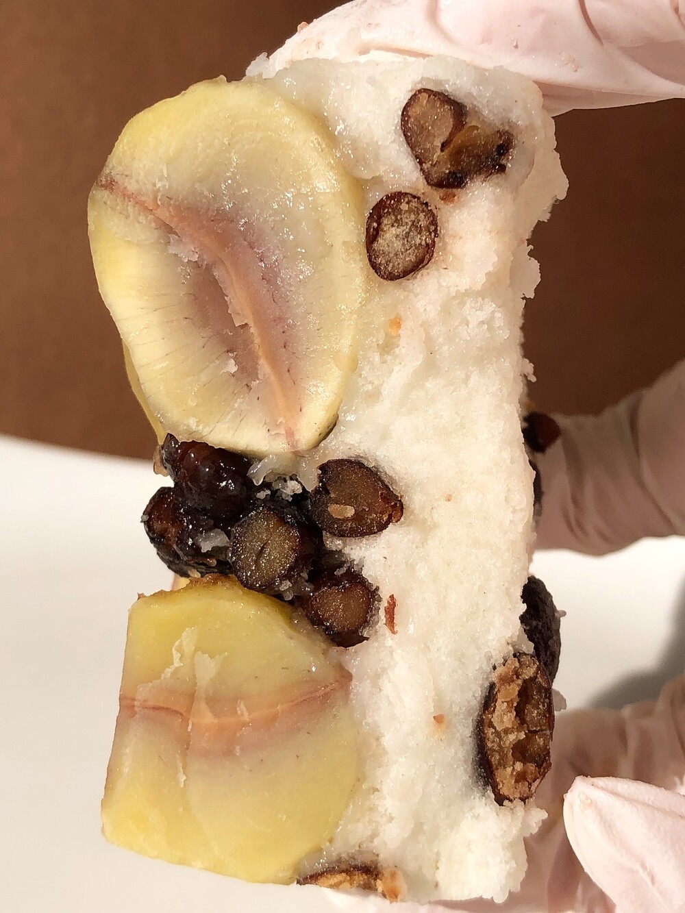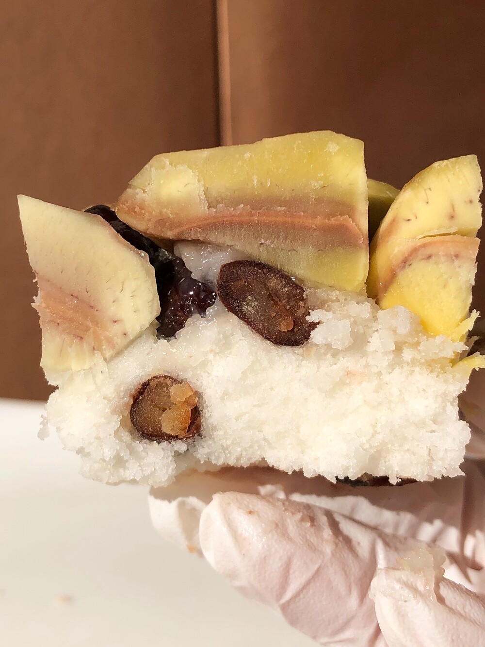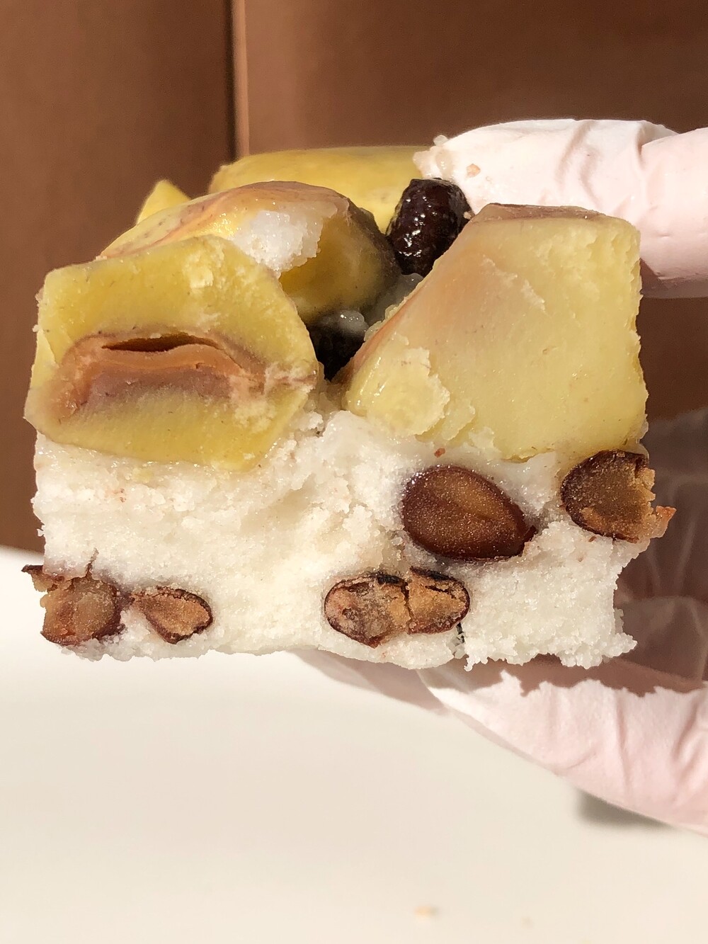 포슬한 밤설기에 통팥을 아끼지 않고 콕콕 박았습니다. 첫 입엔 밤 특유의 고소하고 담백한 맛이 부드럽게 퍼지고, 뒤이어 씹히는 통팥이 깊고 정제된 단맛을 남깁니다. 과하지 않은 단맛, 정돈된 식감.밤설기의 보드라운 결과 통팥의 단단한 밀도가 어우러져담백하지만 결코 가볍지 않은, 차분하고 고급스러운 맛을 완성했습니다.