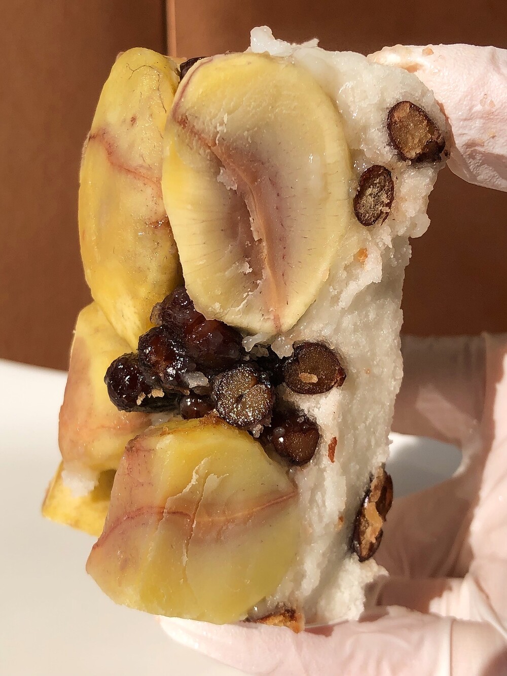 상품명: 통팥 밤설기 식품유형:떡류 업소명:홍블랑푸드 내용량: 1box (한팩90g±5g) 12팩 원재료명 및 함량 : 멥쌀(국산) 40%, 공주밤(국산) 45%, 팥(중국산) 10%, 설탕 5%, 천일염 유통기한 : 제조일로 부터 3개월
