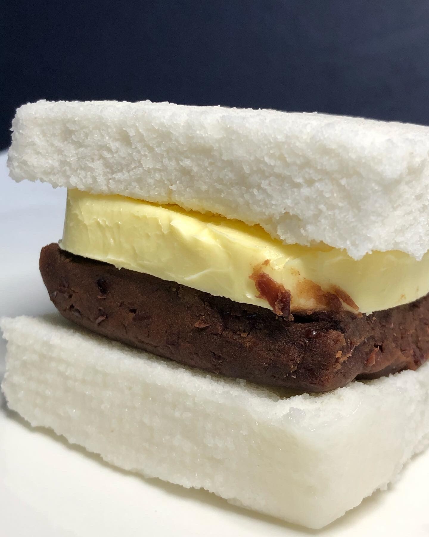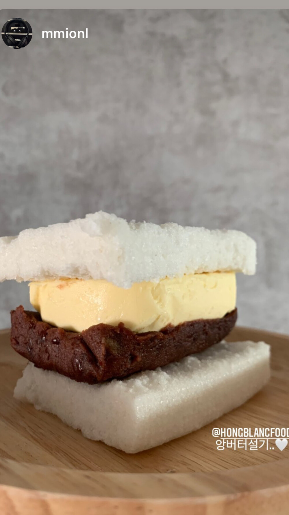 잘 데워진 두 개의 설기 사이에 자연 해동한 앙버터를 쏙 넣어서 함께 즐겨주세요.