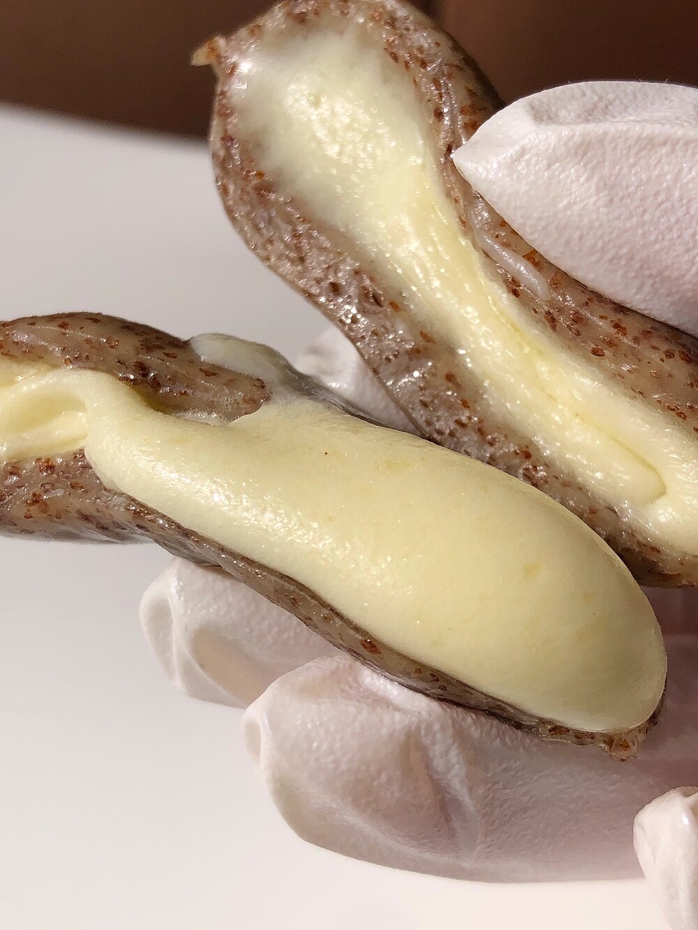 떡을 아주 보드랍고 쫀득하게 쫄깃하게 표현하기 위해 곱고 고운 쌀가루로 빻아 아주 섬세하게 반죽을 한답니다. 이 얇고 얇은 떡에 리얼 듬뿍 모짜렐라 치즈를 아낌없이 가득 잔뜩 채웠습니다. 자연치즈99% 치즈를 고집하는지라 깔끔하게 아주 담백하고 고소하지요. 한입 베어 물면 쫄깃한 떡 사이로 치즈가 입안 한 입 가득 채워지도록 스르륵 흐르며 쭉 늘어나니 이 매력에 포옥 빠질 수 밖에 없답니다.
