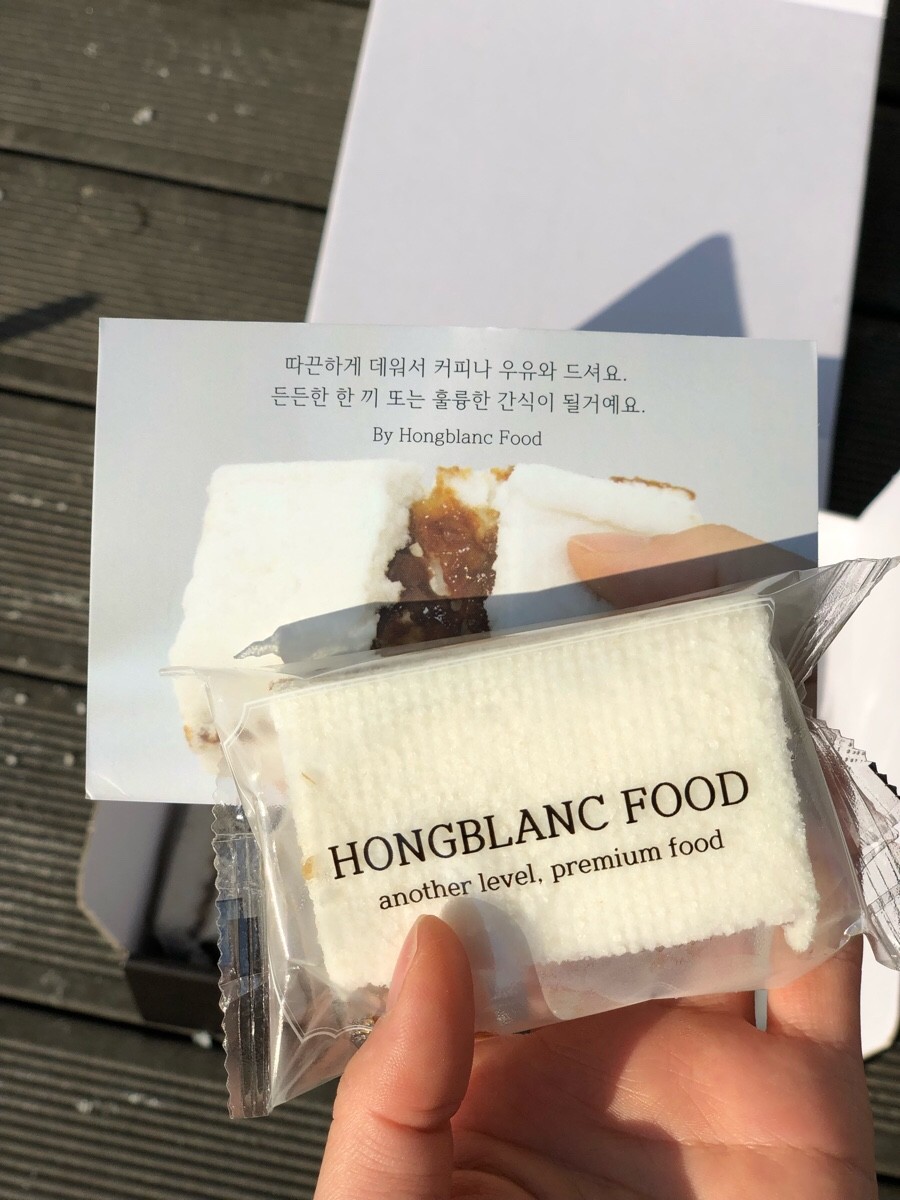 떡 자체의 촉촉함 그리고 쫀득함이 다르답니다. 이건 홍블랑푸드만의 스킬로 인해 느끼실 수 있는 고급스러운 꿀설기랍니다. 멥쌀인데도 불구하고 떡자체의 찰기가 다르고요. 무척 견고한데도 불구하고 쫀득쫀득해요.