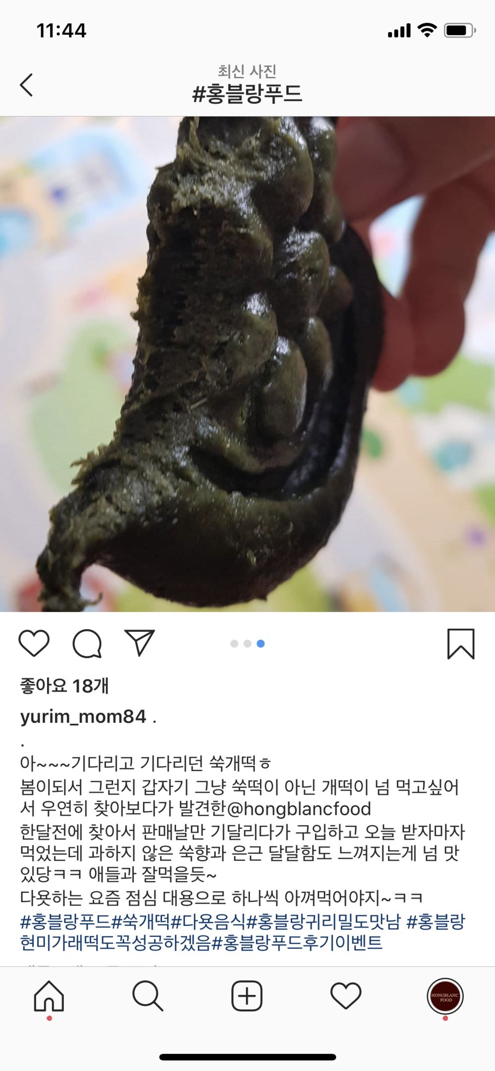 상품명:쑥개떡 식품유형:떡류 업소명:홍블랑푸드 내용량:한봉지당, 60g +-10g / 1box 20봉지 총 1kg원재료명 및 함량: 멥쌀(국산)60% 쑥 35% 대두유 정제염 정제수 설탕5% 참기름(중국산) 알레르기 유발물질: 대두, 참깨 함유 보관방법: 꼭, 냉동보관 유통기한: 전면 별도 표시 포장재질:opp+cpp합지(내면)/종이(외면) 보관방법: 꼭, 냉동보관 유통기한: 전면 별도 표시 포장재질:폴리에틸렌 주의사항: 꼭 냉동보관! 개봉 후(해동 후), 가급적 빨리 섭취하세요. 개봉 후, 해동 후, 바로 드시지 않으면 변질될 수 있습니다. 상단재료 (특히 유제품,대두유)에 알레르기가 있으신 분들은 섭취하지 마세요. 대두 유제품을 사용하는 시설에서 제조되고 있습니다.