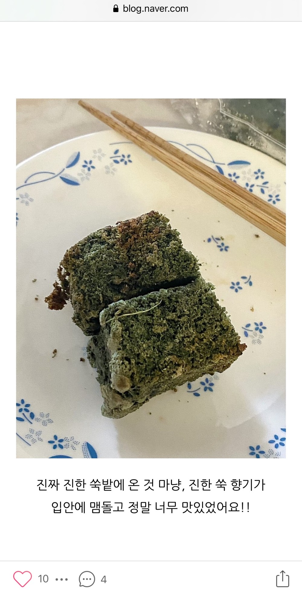 쑥 잔뜩 가득 넣은 진하고 진한 쑥설기
