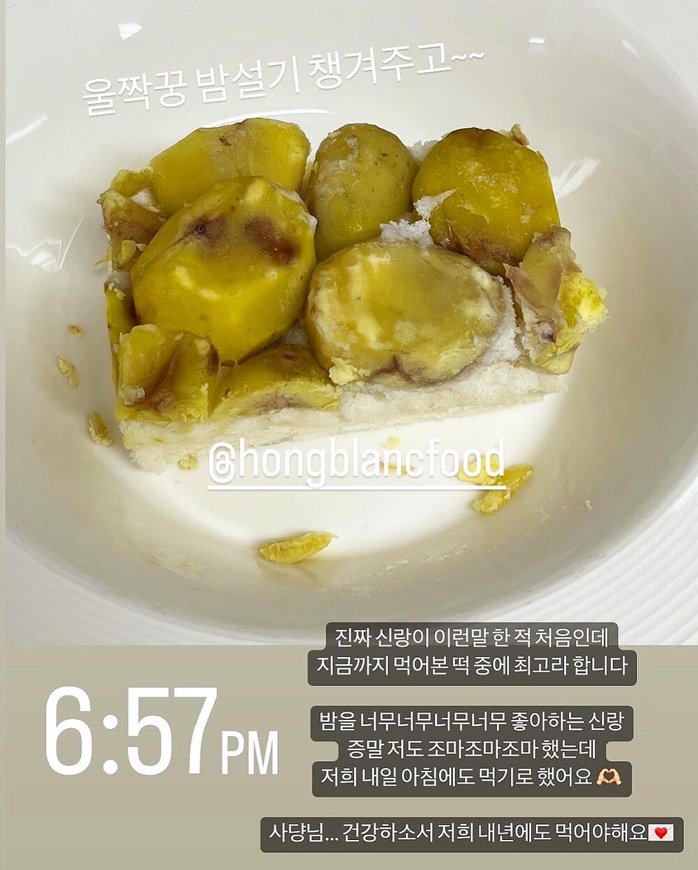합성첨가물 잔뜩 그런 통조림 밤 했을거면 아예 시작도 하지 않았어요. 직접 절인 공주밤이예요. 그냥 딱, 제철에 한번은 먹고 지나가야 할 것 같은 그런 설기니까, 꼭 드셔보세요.