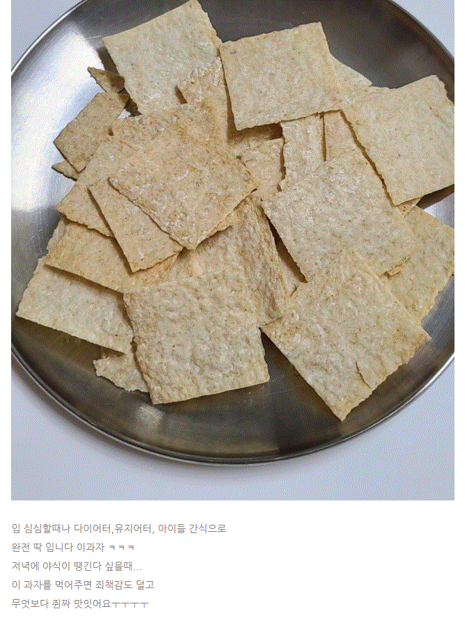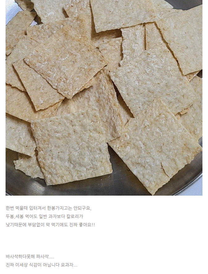 건강하지만 세상 맛있게 담백하고 고소하고 부드럽게 바삭하게 슬림한 과자
